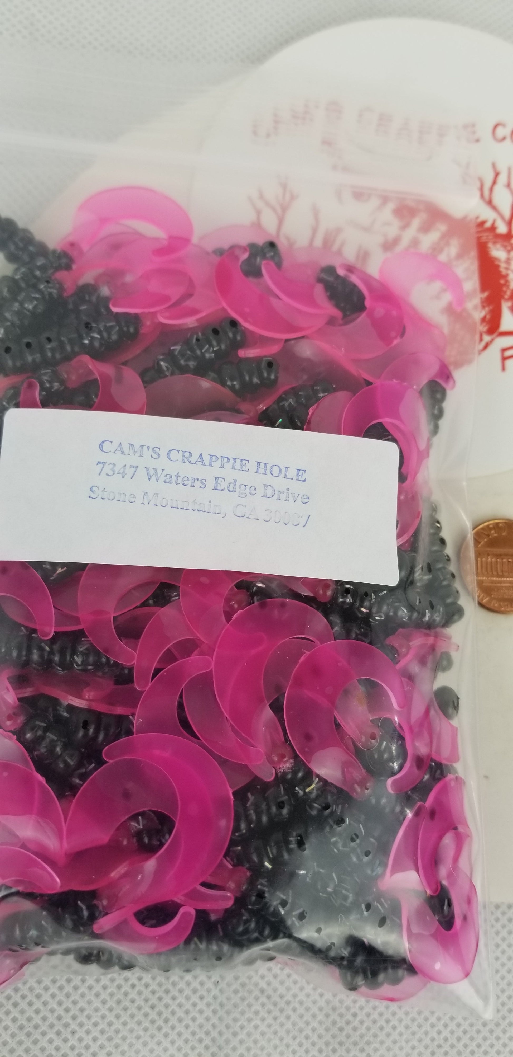 Cam's 2" BLACK BLAZE (HOLOGRAM FLAKE) Curly Tail Grub 100pc Crappie Soft Jigs [A Cam's Exclusive]