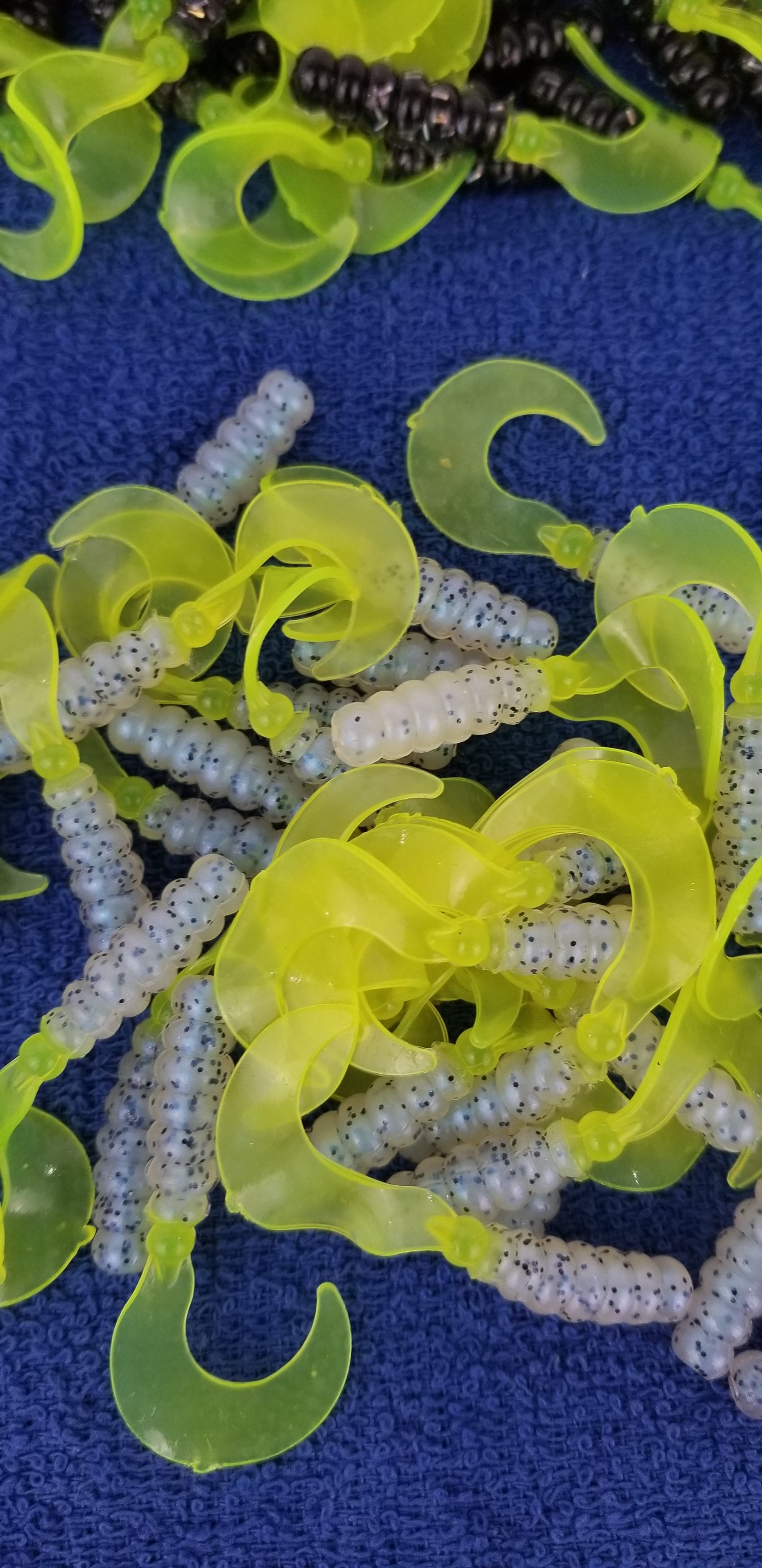 Cam's 2"(HOLOGRAM FLAKE) RED BLACK & CHARTREUSE/MONKEY MILK & CHARTREUSE 100pc (SPLIT SET) Curly Tail Crappie Soft Jigs [A Cam's Exclusive]