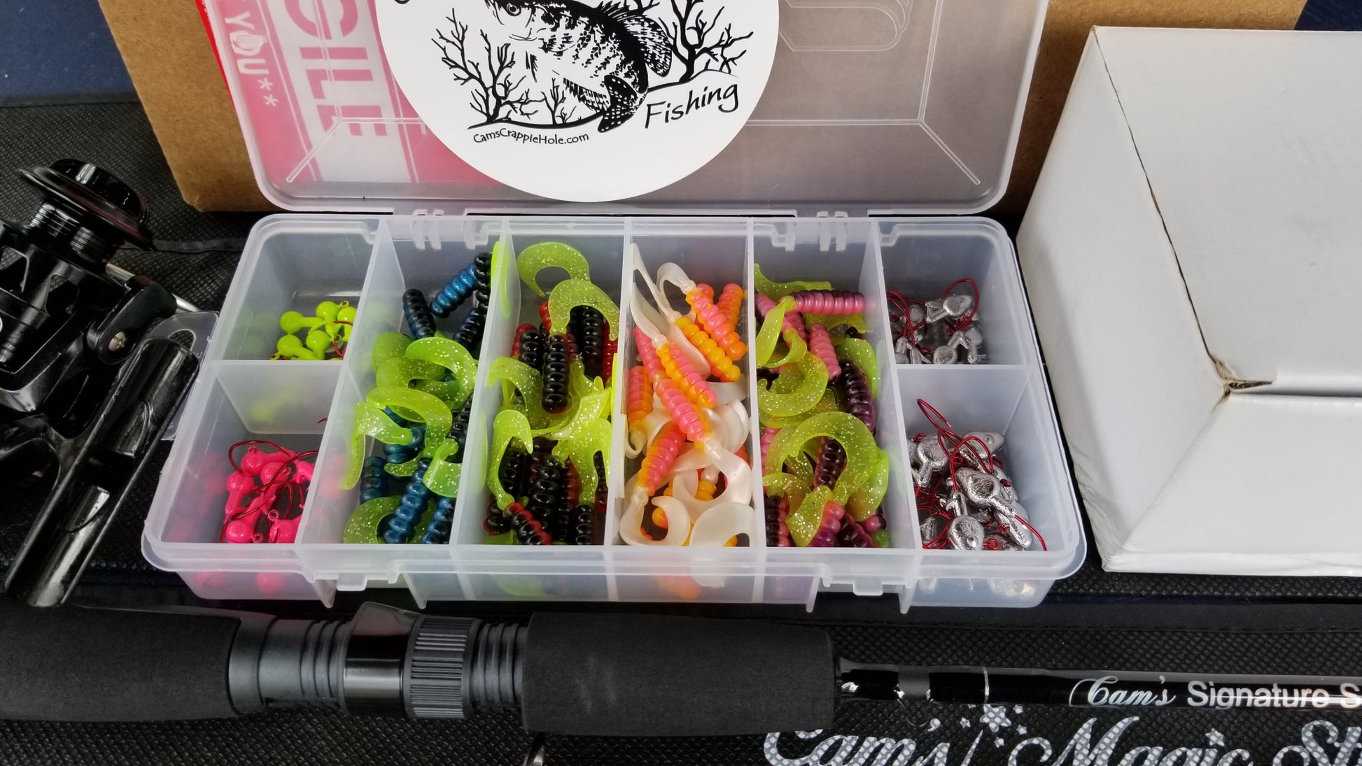 The Best Of the Best in all Black With our Signature Series "Blacked Out Titanium" Combo Kit. This Kit features The Blacked Out Titanium 6'6" 2 piece Carbon Fiber Rod is designed for crappie and panfish, combined with our super elegant 11 (ball bearing system) is the highest in crappie BB reel's that will assure your day on the water is complete and smooth.... In addition you get 4 of our most popular curly tail super soft plastics grubs, hardware included 10ct. 1/16 pink jigheads (world renowned Nasty Bend Hook) 1/16 Chartreuse + 1/8 Unpainted minnow head, 1/16 unpainted jighead, that is all ready to go fishing when you are all in a weather resistant case. We will only offer this while we have them in stock.