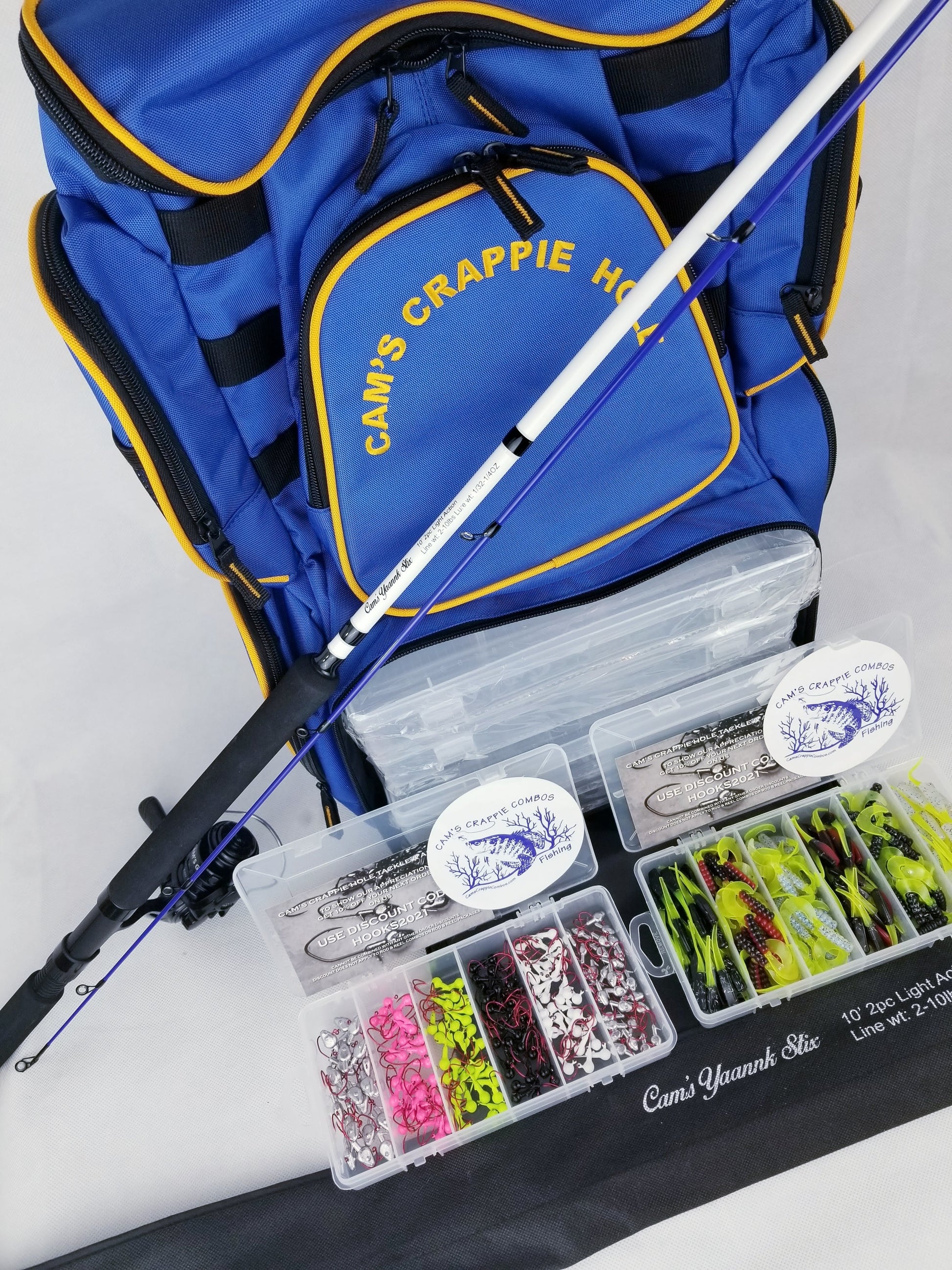 Cam's Crappie Hole Fishing Tackle Backpack Find The Water Kit. This is Our Ultimate All In One Package. It Include Everything Below: