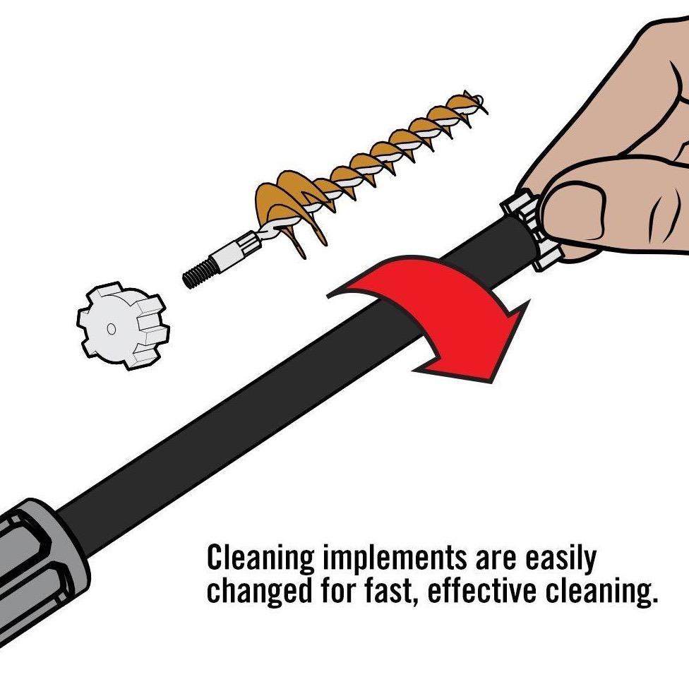 - Scraper, Chamber Brush and Cleaning Pads Attach Securely to the End of the Tool