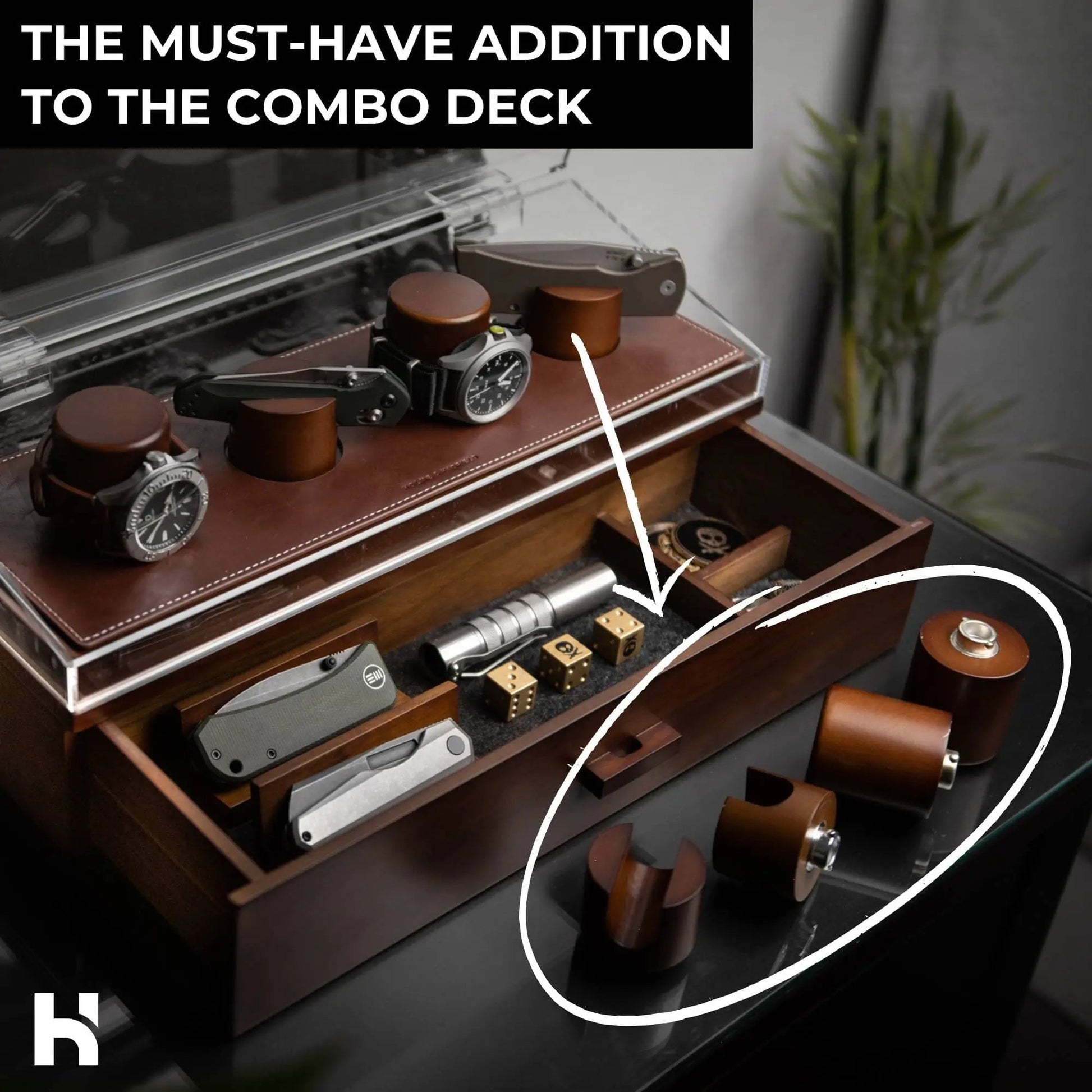 With the fixed locking mechanism, these pillars securely hold your knives and watches in place, ensuring they remain safe and protected. Crafted with the same attention to detail and premium craftsmanship as the Combo Deck, these extra pillars are sturdy and durable.