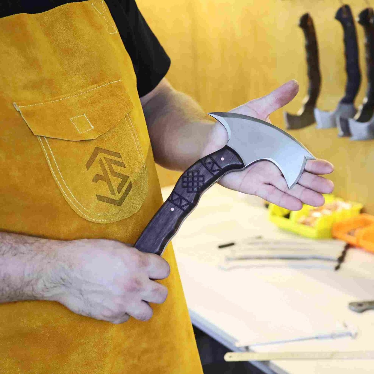 - Superior Balance & Robust Build: crafted for precision, this compact tomahawk ensures optimal weight distribution, making it perfect for controlled throws and heavy-duty use. Forged from steel AISI 1065, it offers exceptional durability and corrosion resistance. With a metal thickness of 8 mm and a Rockwell hardness of 52-56(HRC), it is built to withstand the harshest conditions.