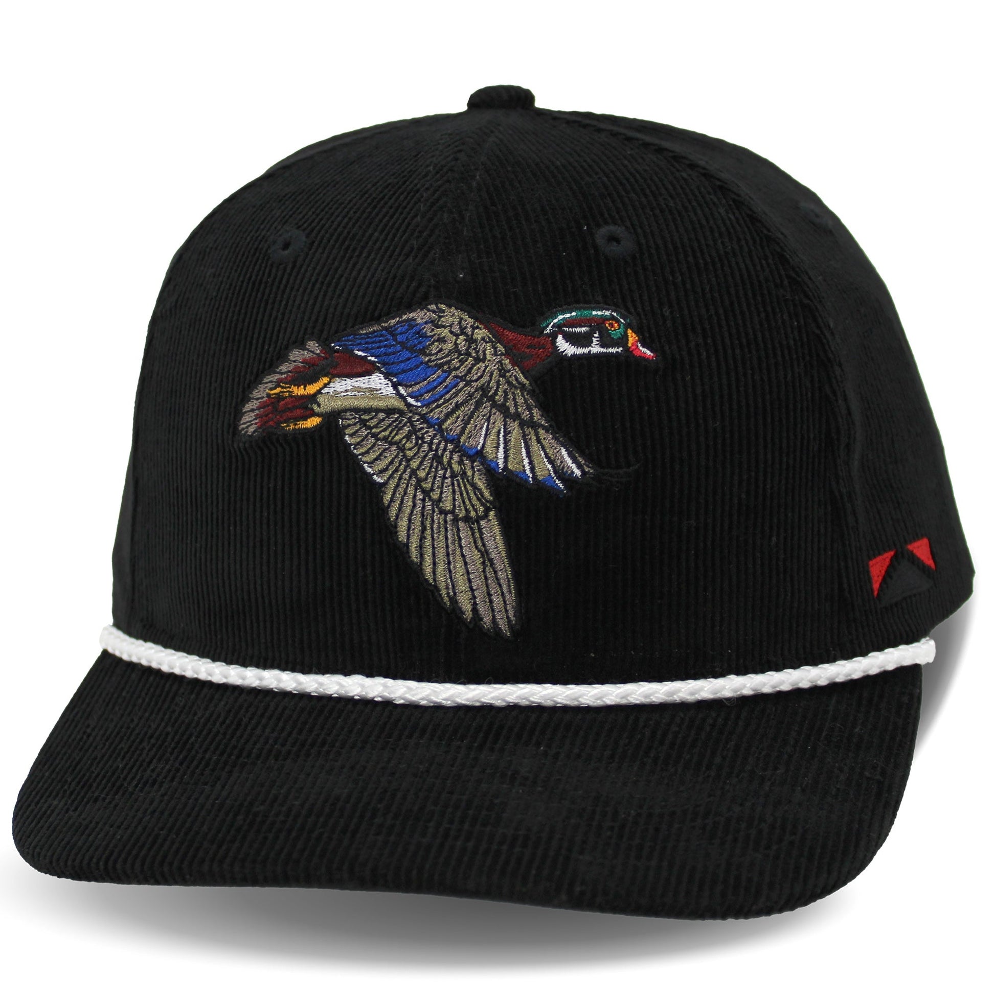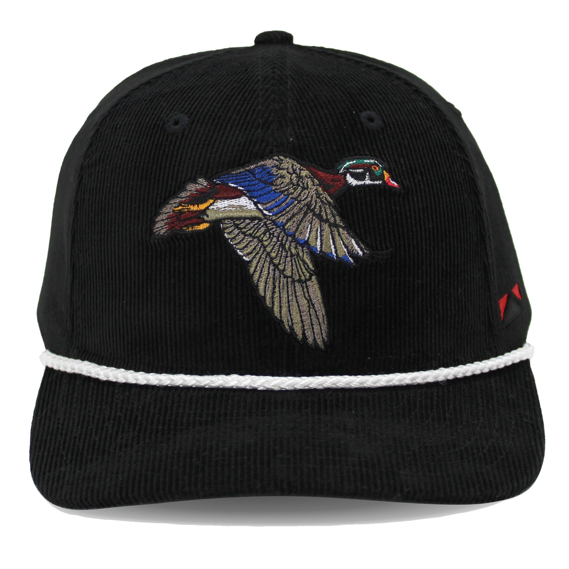 The corduroy wood duck hat is built on our Riverside 6-Panel rope cap style. This unique wood duck hat design features a vintage throwback style on corduroy fabric. Our throwback camo is printed on the under crown and visor for a finished look. Our COMFORT SNAP™ snapback closure combines the stretch of elastic with the adjustability of a snapback, allowing for a custom stretch fit. Lastly, this wood duck hat features our American™ Fit sizing that fits men’s US head sizes MD – XX.