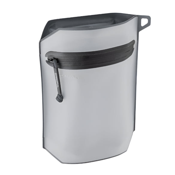 The DAKA Volume Pouch was specifically designed to maximize usable storage space while maintaining a compact footprint. Its intuitive design allows the Volume Pouch to stand vertically on its own and expand up to three liters in size when in use. The wide mouth and water-resistant zippered opening allow the user to insert and remove items with one hand without having to hold it open with the other. The large translucent window makes organizing and locating gear even easier, and a single large carabiner attachment point doubles as a lashing point and carrying handle so your stored gear will always be at hand when needed.
