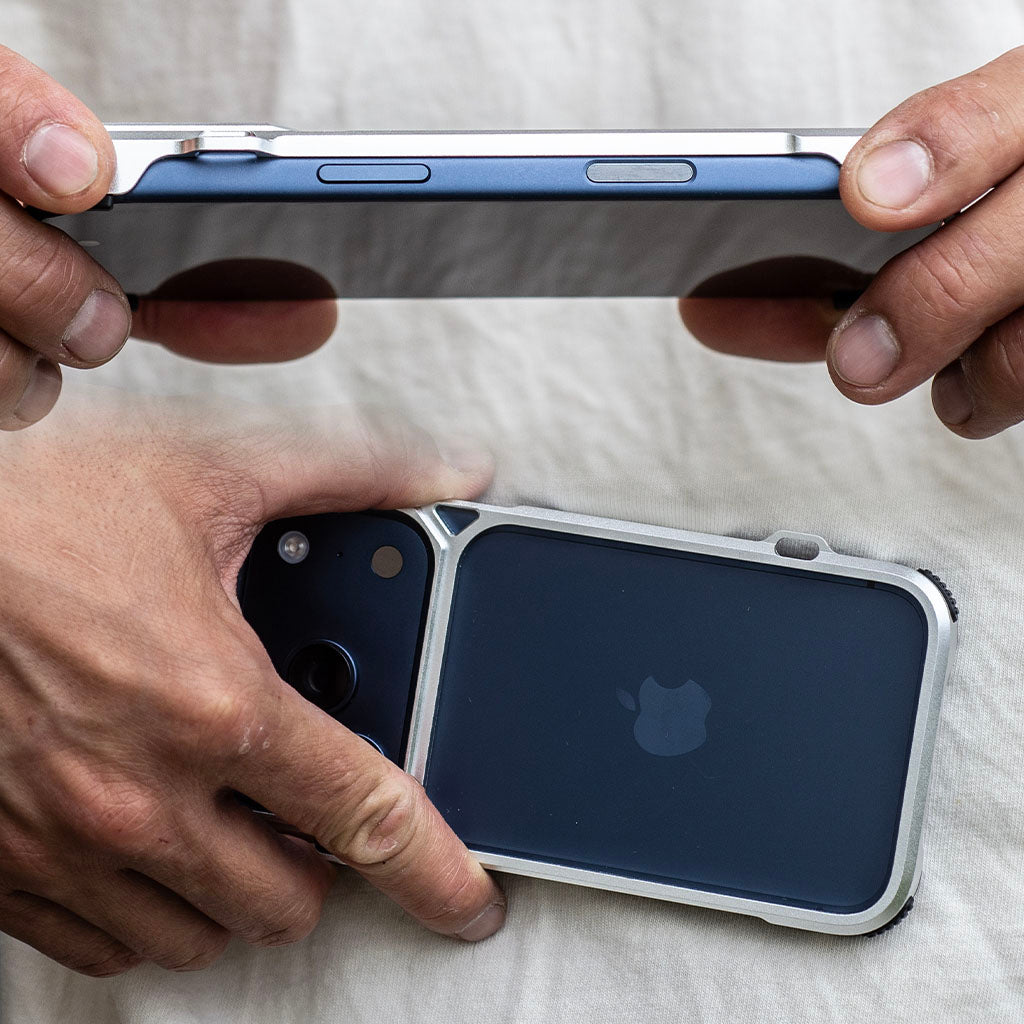 The Covert Case for iPhone 17 Pro is a CNC machined unibody design that is snap fitted to the phone. Extremely light and comfortable to hold in your hands. The Corner TPU footings guide the phone into place and provide bumper protection while the machined aluminum body hugs your phone with support and precision.