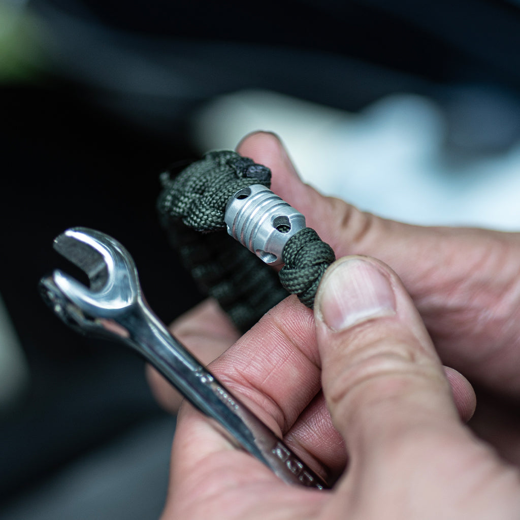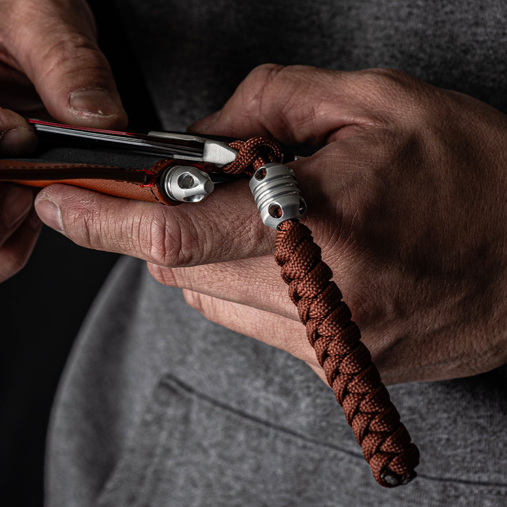 Introducing the Dango EDC Bead! With its combination of functionality, durability, and style, the Dango EDC Bead is set to become an essential addition to the EDC community. Crafted with precision and designed for versatility, this innovative accessory is set to redefine your everyday carry experience. CNC machined out of 6061 aerospace aluminum, this lathed bead can be used as an embellishment or a grip handle to help you draw your everyday carry gear. It can also be used to enhance your zipper pulls and lanyards. Sold as a starter kit - the Dango bead is paired with a 24" (~61cm) 550 black paracord for you to weave a beaded lanyard in your own way! In addition, with multiple holes designed on the Dango Bead, you can get creative with weaving patterns and combine your weaves with both 550 and 95 paracords!