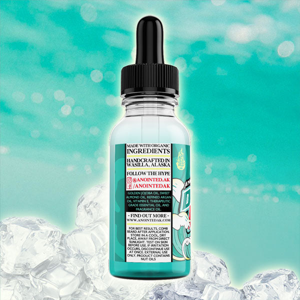 Product Info: 1 Fl. Oz. of Dewdbro Baja Blitz Beard Oil in a Shaded Teal Boston Glass Bottle