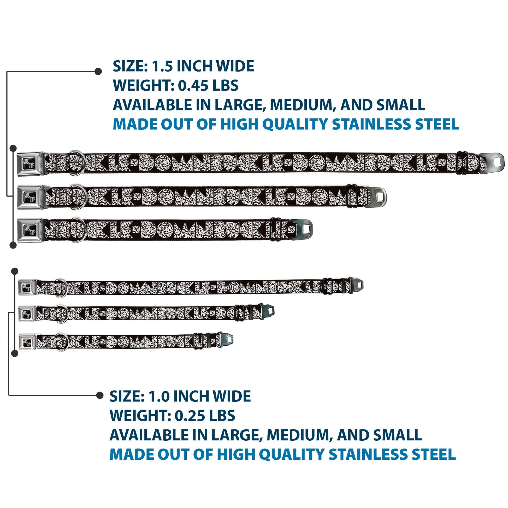 Your dog will be the talk of the town when people notice they're wearing this awesome SeatBelt Dog Collar! Made from high-density polyester and durable steel components, this collar is built to last. It features beautiful vibrant artwork. The buckle is a miniature authentic SeatBelt Buckle, so you press the center button to release the clasp. This product is Made in USA by Buckle-Down Inc. and officially licensed by Buckle-Down.