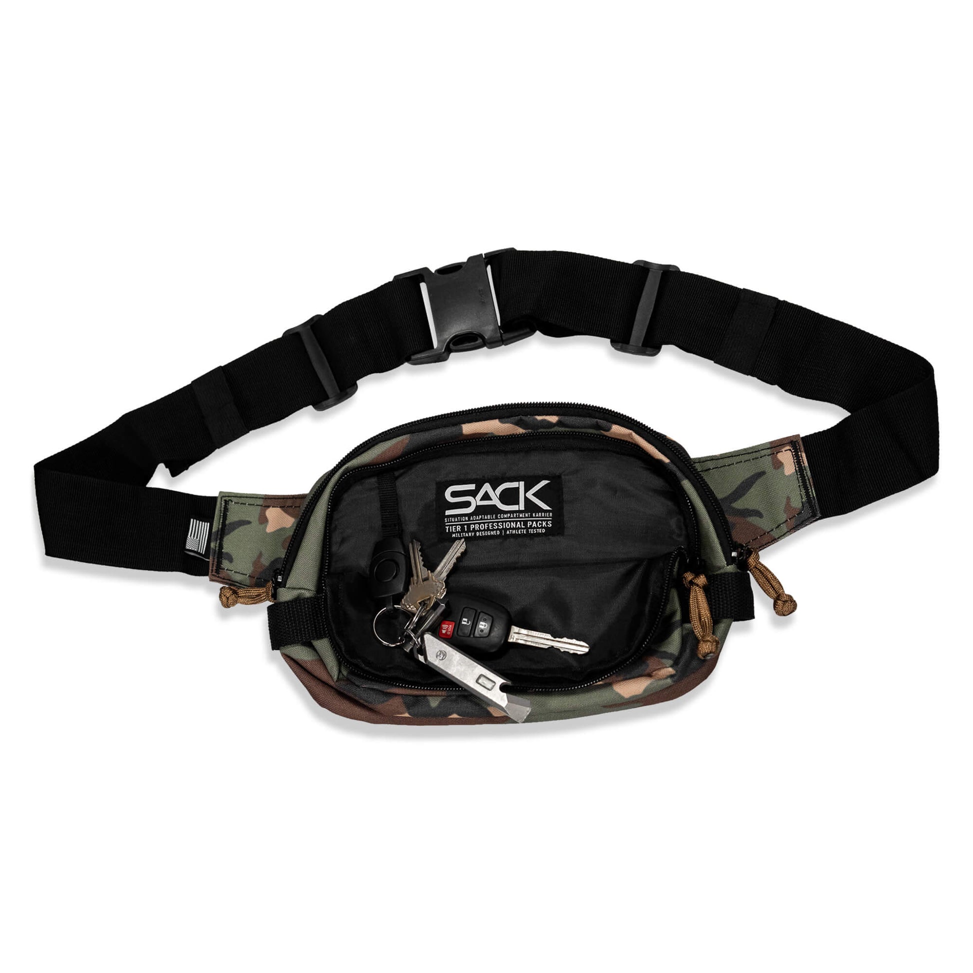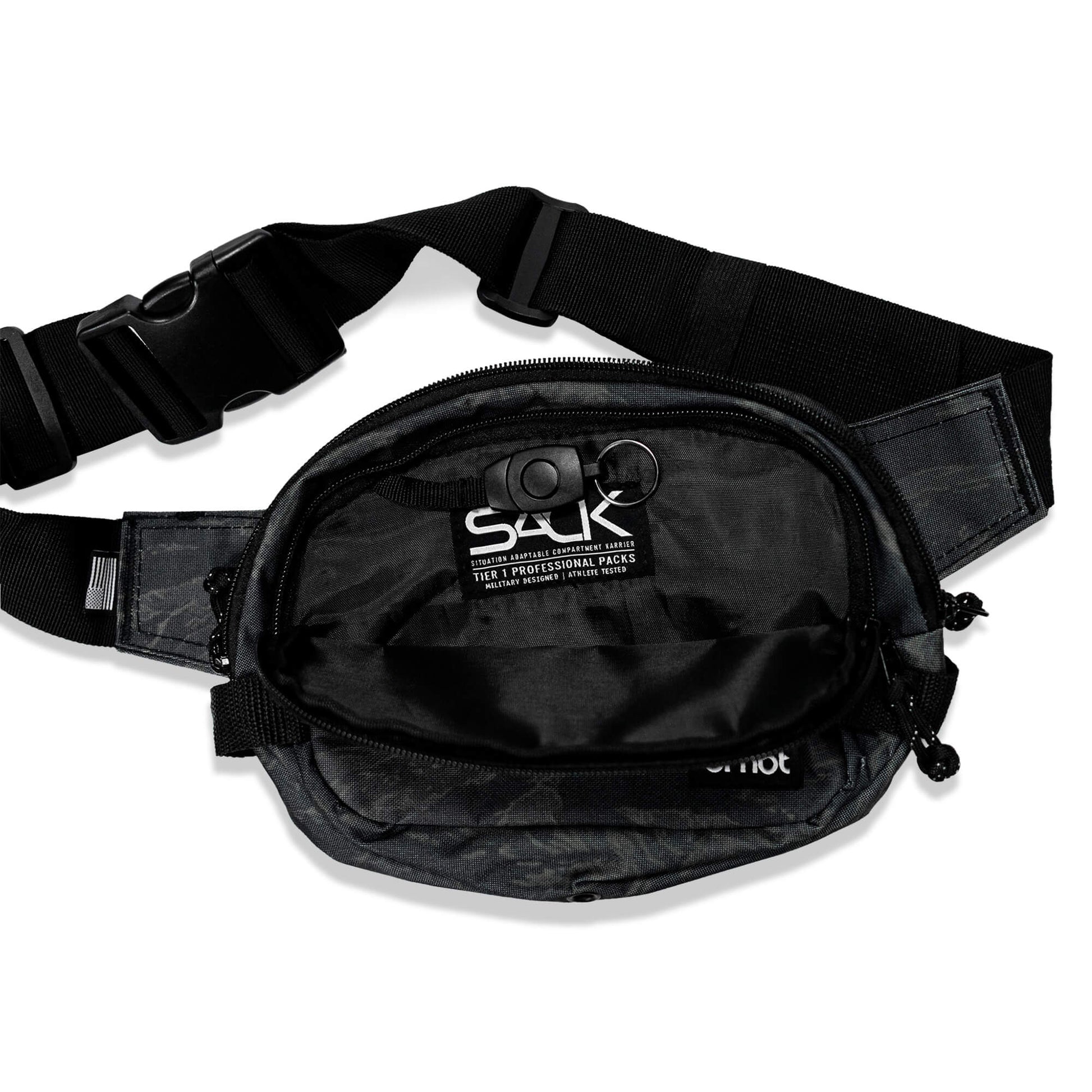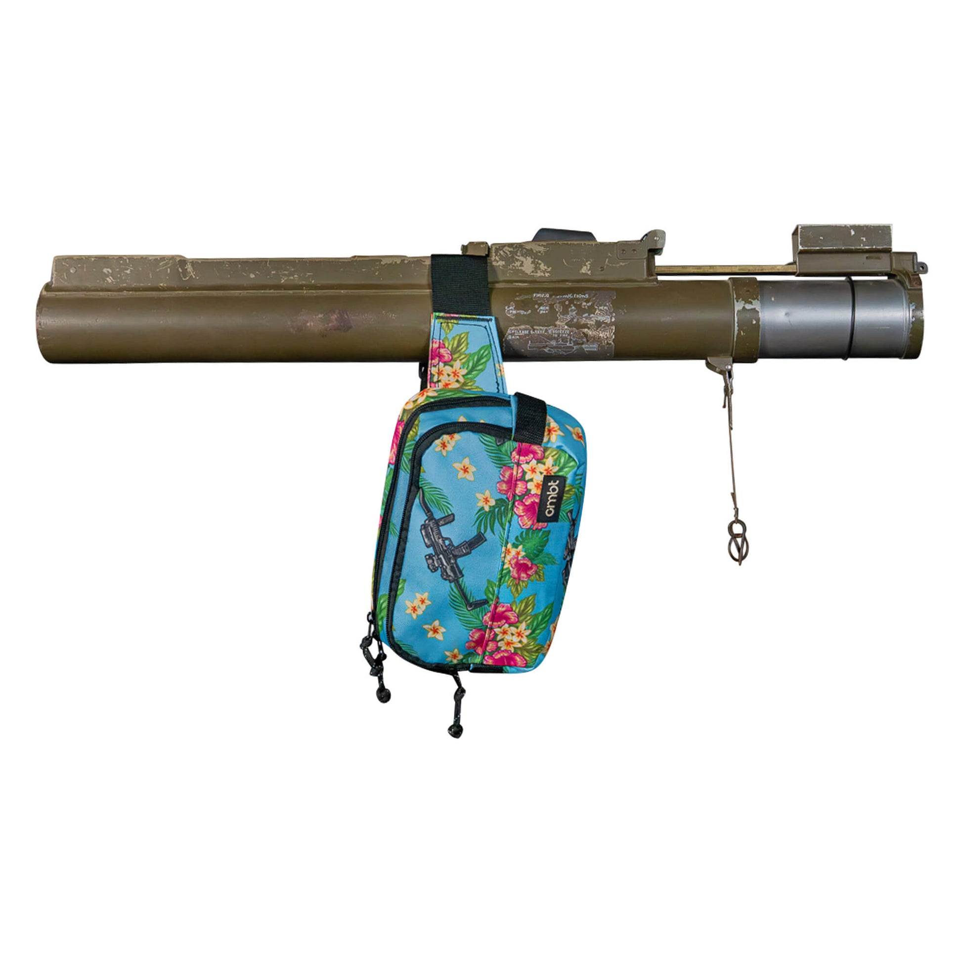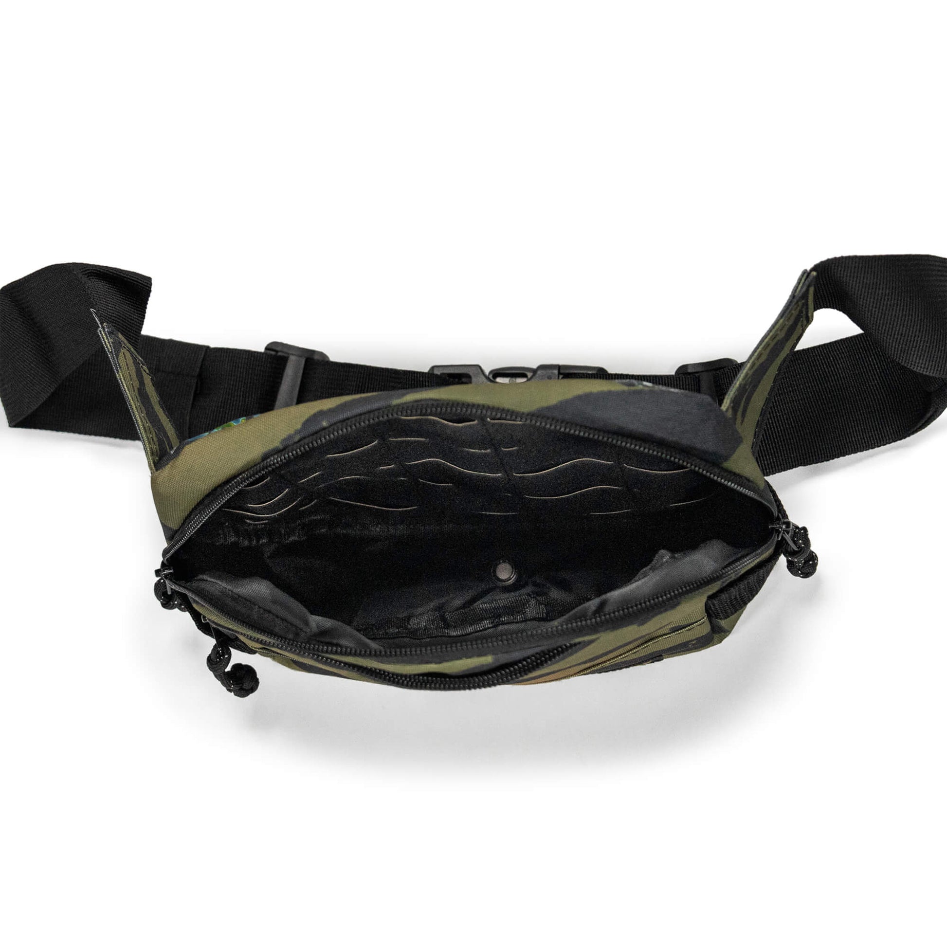 Crafted from custom-printed, weather-resistant nylon that stands up to rain, dirt, and hard use. Two roomy compartments hold your sidearm, wallet, keys, and other must-haves—without the bulk.