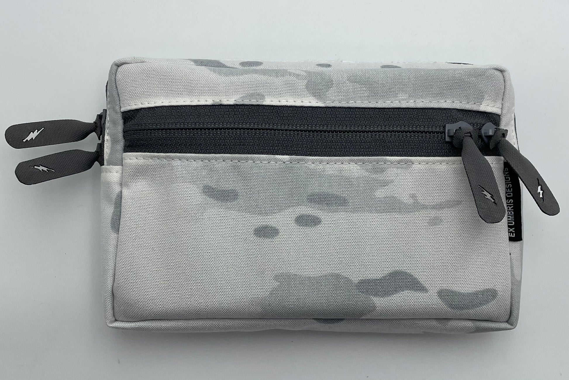 This is a very slim pouch made with 500D Cordura. It features reverse YKK zipper pulls on both the main and front pockets, and loop tape on both the front and back interior of the main pouch to accommodate battery and other organizational inserts.