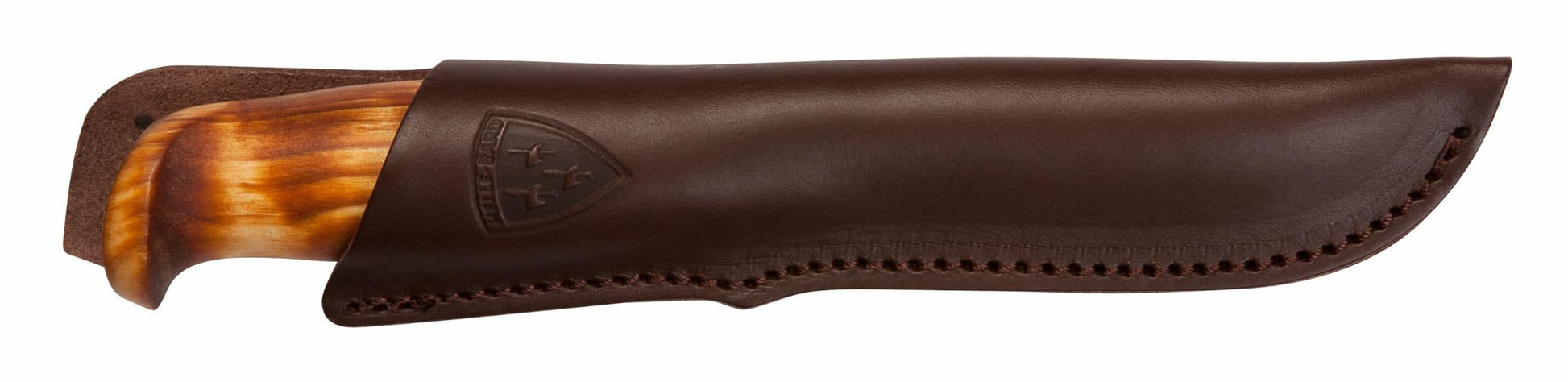 The Helle Tollekniv is an all around utility knife with a polished Sandvik blade. The handle is smoothly sanded and has a nicely mellow finish. The slotted, genuine leather sheath will accept belts up to about 1 3/4". This is about all the knife anyone needs!
