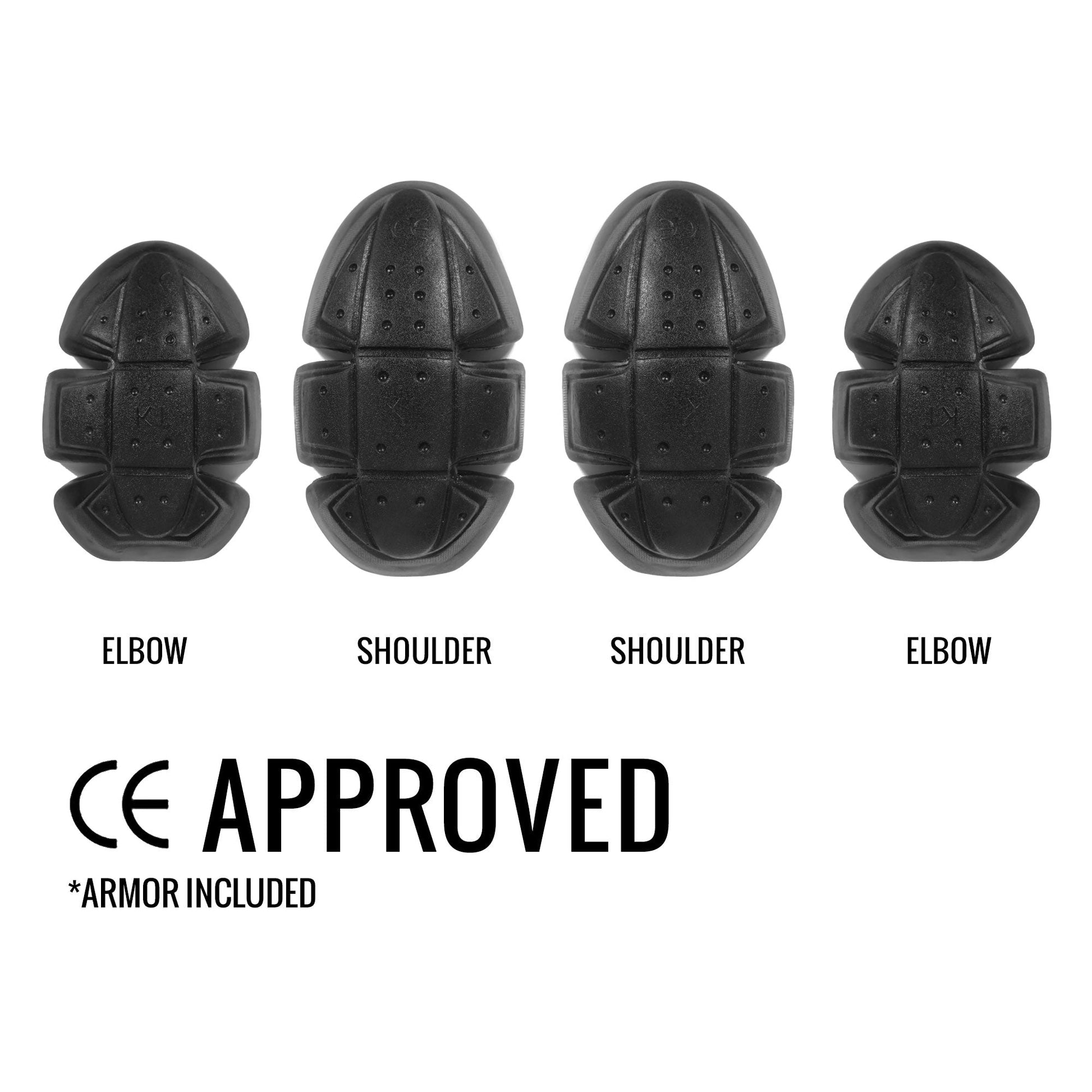 The CE approved removable armor for the shoulders and elbows and inner mesh lining make this a great go to shirt for the bike or the club. Black snaps and the slightly distressed denim make this a great look.