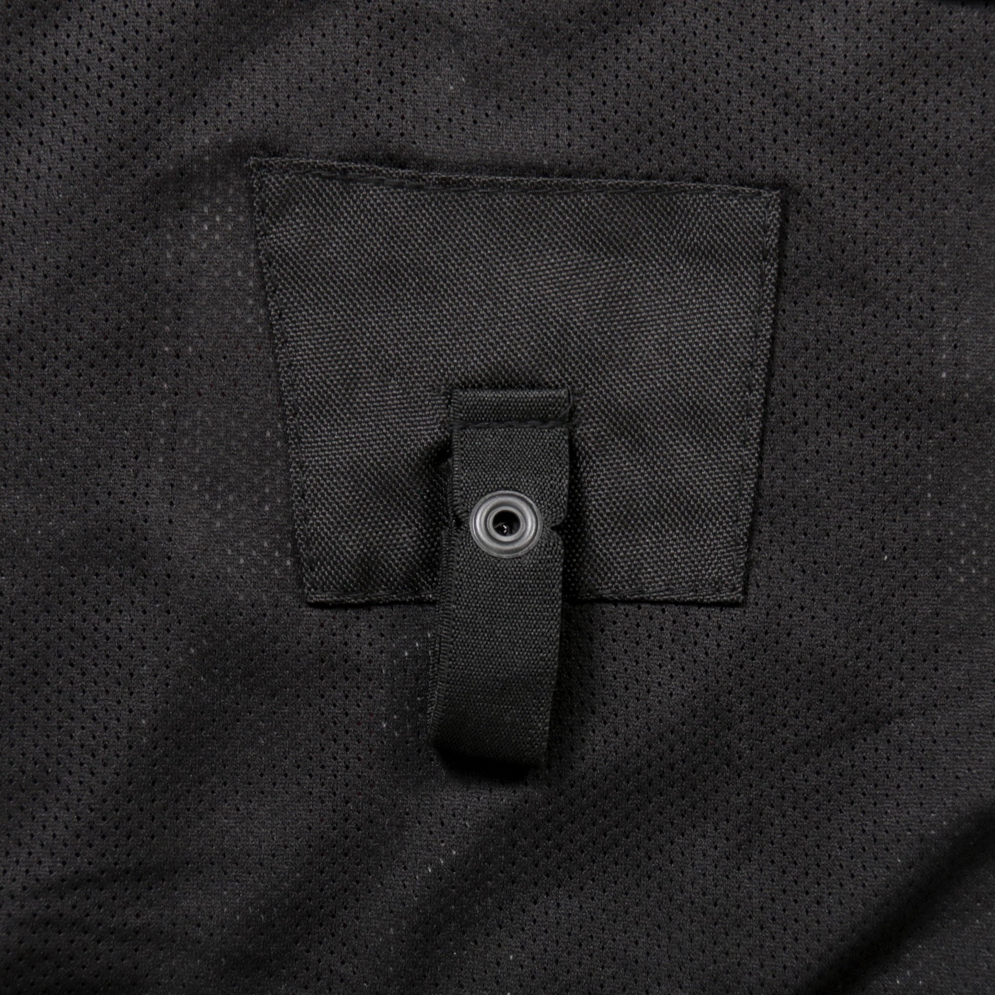 - Dual Front Closure with Black Snap Buttons and Zipper