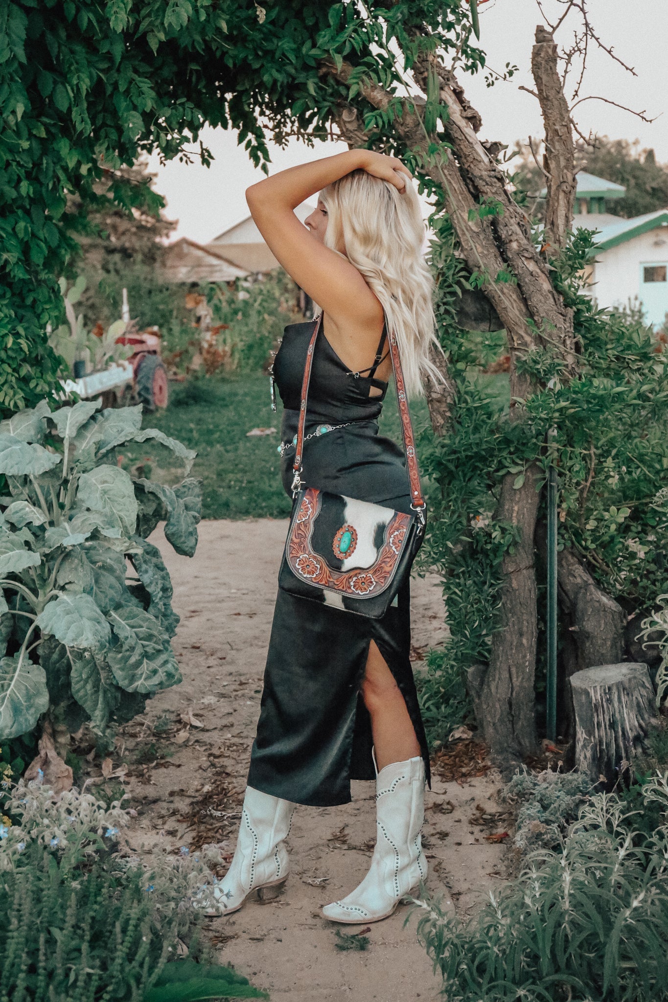 Jessie Jane was designed for that gal that wants that extra Western Fashion touch. She boasts a turquoise velvet interior!! Ya'll! Turquoise Velvet! She also boasts the most beautiful tooled centered faux turquoise stone. The interior contains a zippered pocket to store you valuables.
