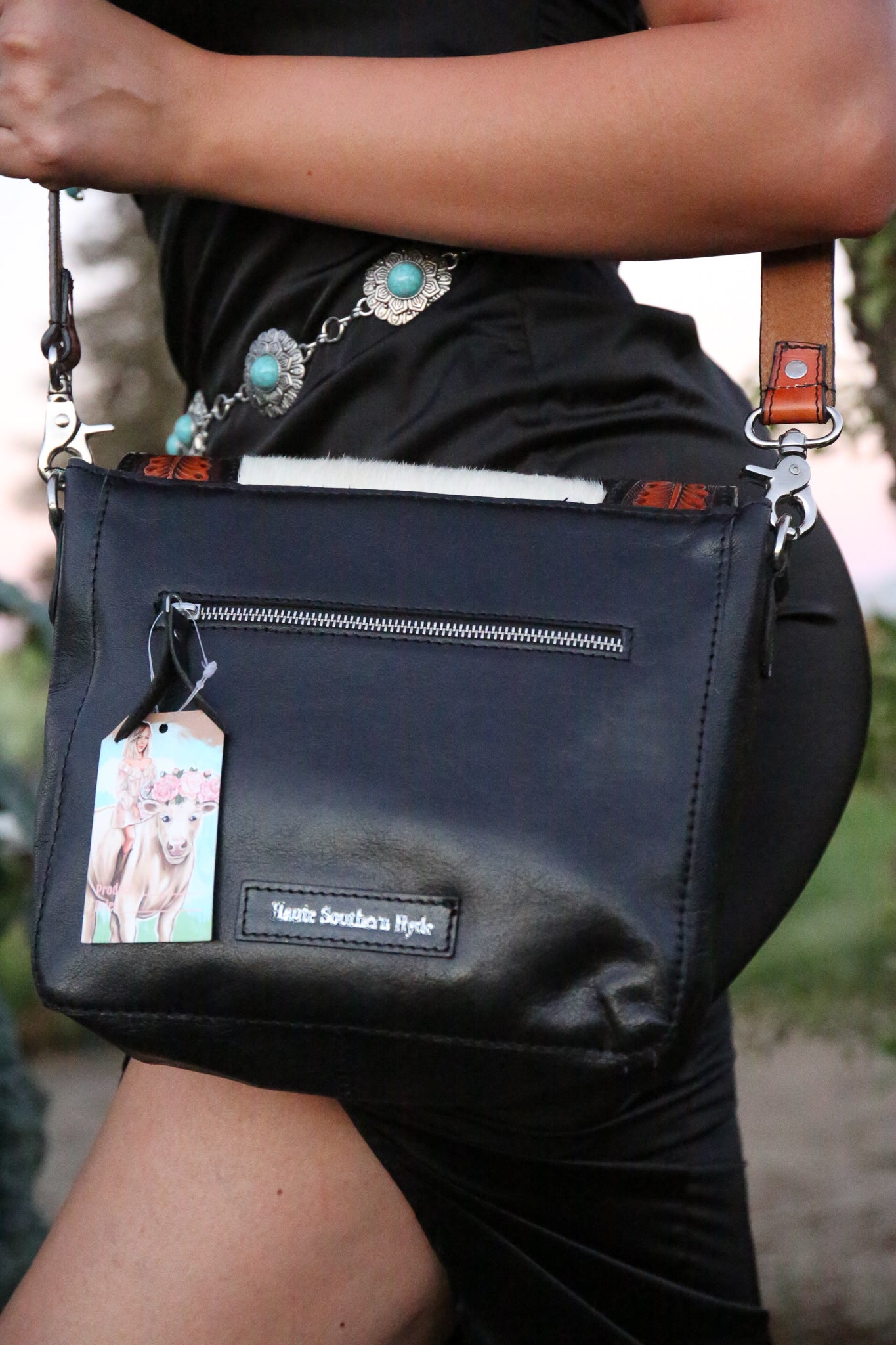 Please note each cowhide and stone will be one of a kind as each new bag will be made with a brand new unique hyde and stone.