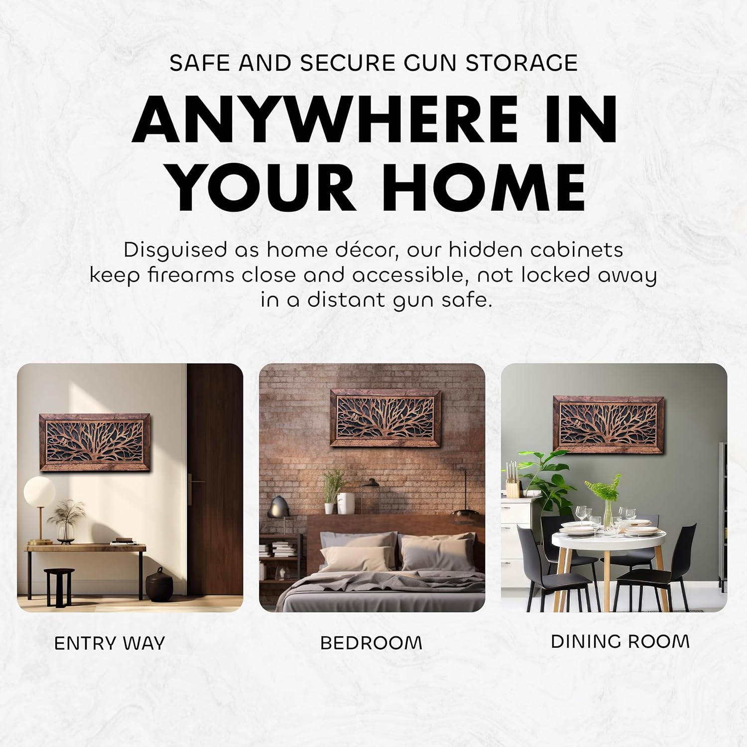 - HANDCRAFTED NATURE-INSPIRED DESIGN: Featuring a detailed Birds in a Tree design, this hidden gun storage wall decor brings artistry and function together. Handcrafted in the USA with family-owned care, it conceals your firearm in a piece that enhances any room.
