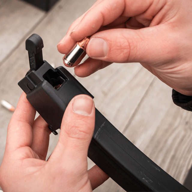 Currently in use with the Israeli military, the LULA Loader is a military specification tool that allows you to load and unload magazines fast, effortlessly and painlessly. The LULA Loader is constructed of polymer, manufactured by Maglula Ltd and made in Israel to military specifications. This model of maglula is a loader/unloader for the HK MP5, 94, and SP 89 metal magazines. Avoid using the older straight magazines with this loader. The loader is small enough to fit in the pocket and very lightweight.