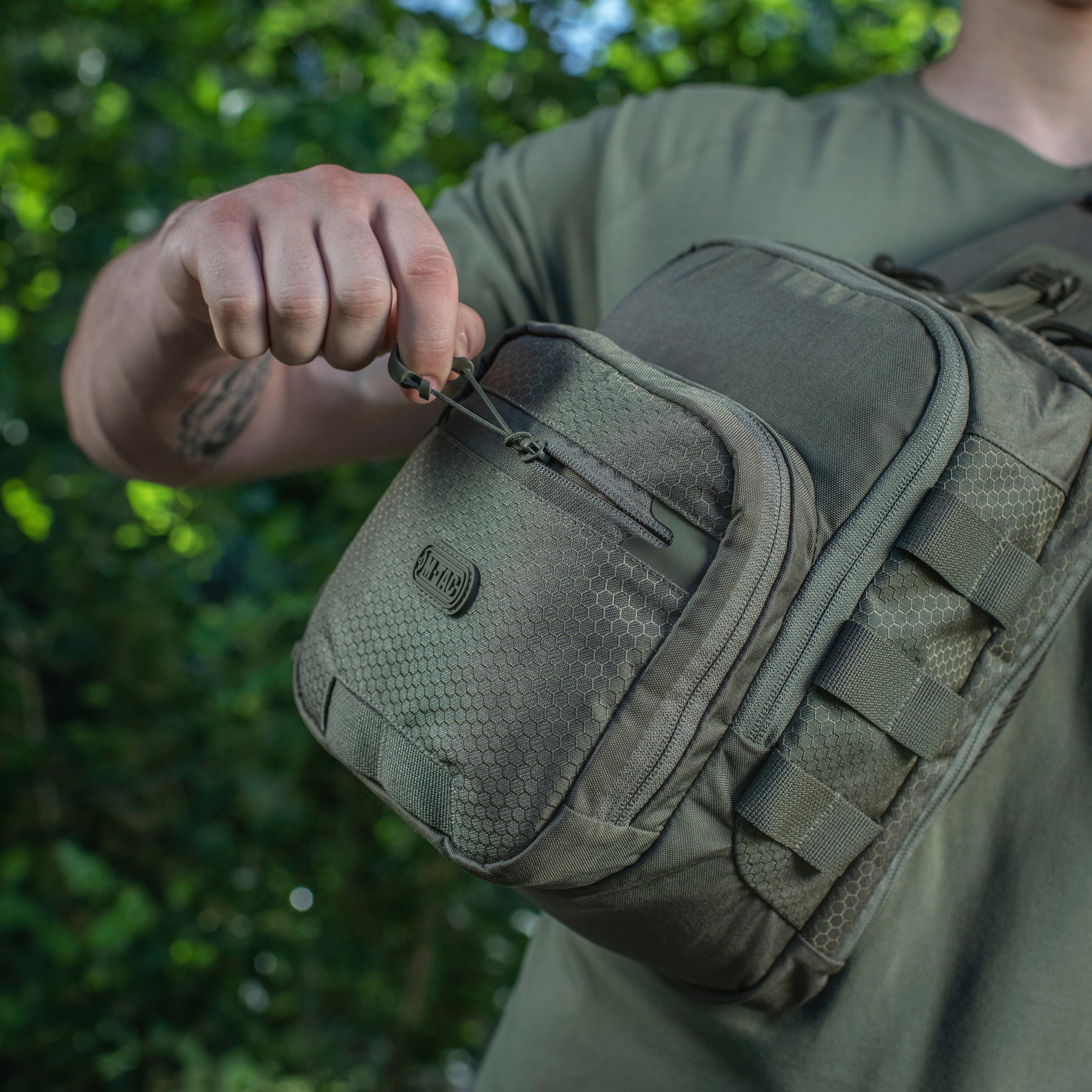 The M-TAC Cross Bag Elite is a successful combination of a bag and a small backpack. Accessories of this type are also called a sling pack, i.e. a backpack / bag for one shoulder. Crafted from Cordura 500D and Cordura Hex - abrasion-resistant and low-maintenance material. The bag is harnessed with a shoulder sling and a MOLLE interface to attach additional equipment. The bag consists of three main compartments to pack all your belongings with ease. The thoughtful arrangement of pockets and compartments will help you in any situation to place all your carry-on items as conveniently as possible. The bag also has compartment for concealed carrying weapons. The inside is lined with a loop panel, so you can attach a holster (not included) or modular organizer inserts.