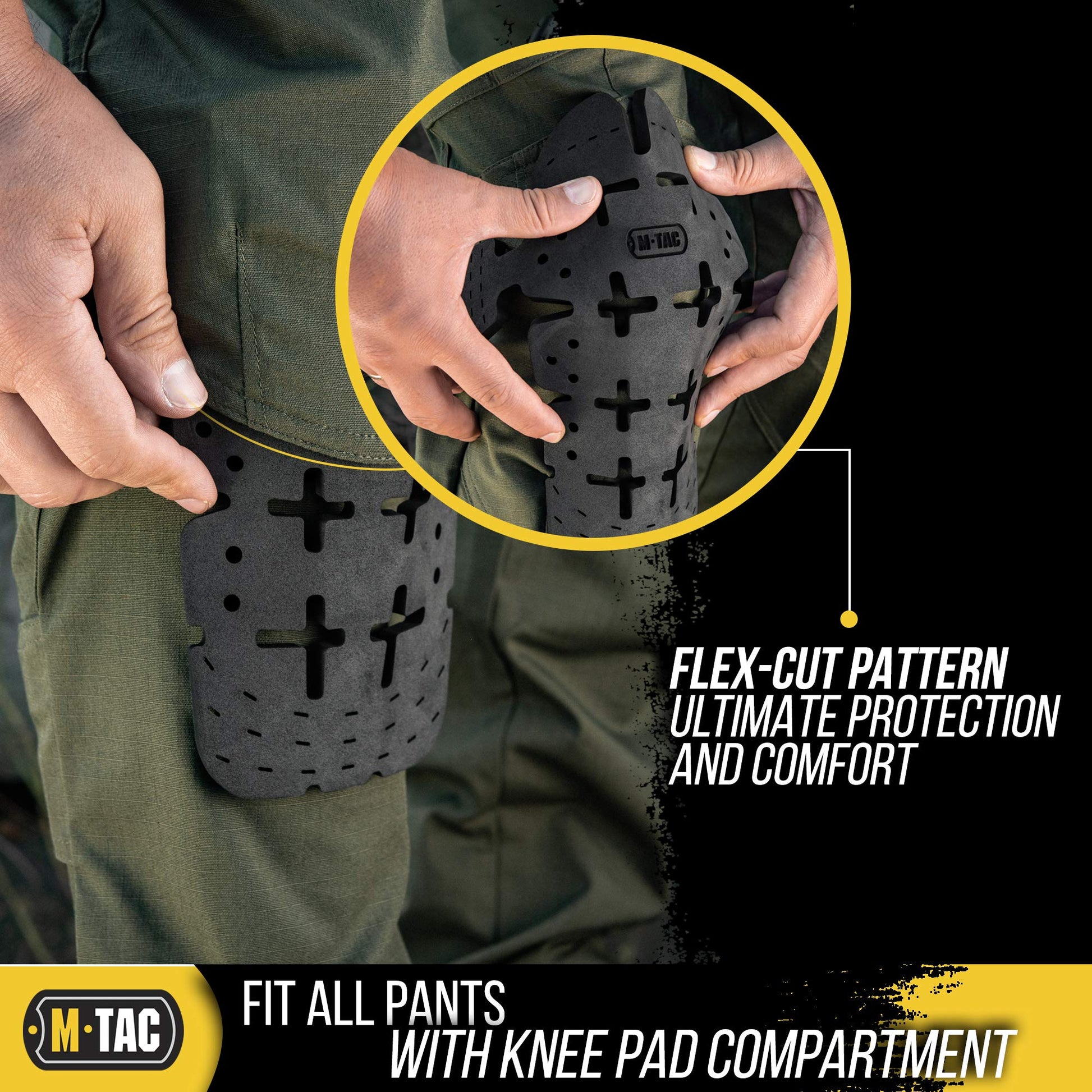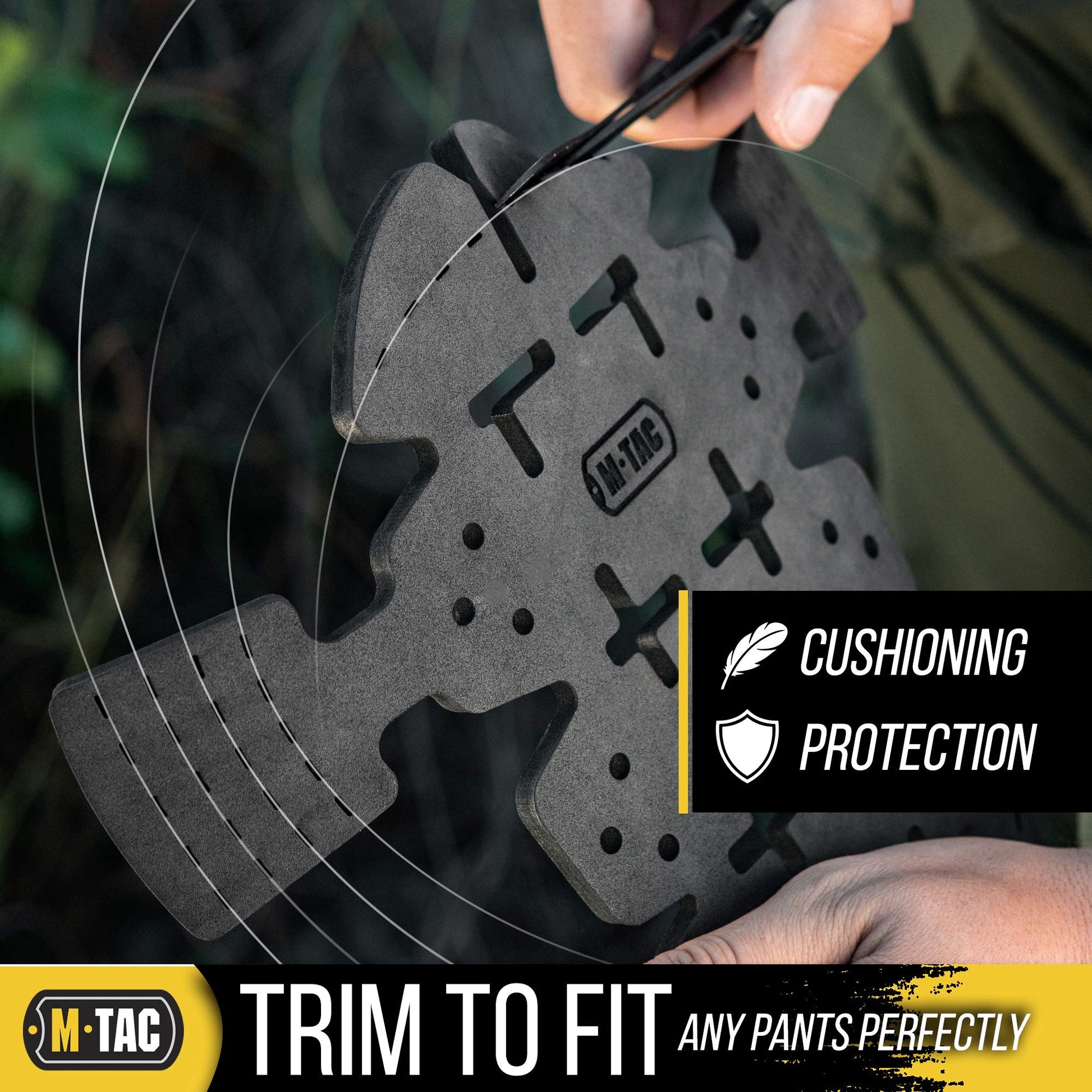 The M-Tac Eva Knee Pad Inserts are designed to protect your knee joints without restraining movement and maintaining agility. Made out of 0.3" EVA foam. This is a soft, memory-foam polymer material. The kneepads return to their geometric shape even after long periods of deformation. This allows the pads to follow the natural movement of your knees. The kneepads have visible cut-out lines, allowing you to tailor them individually to your size. Also feature ergonomic crevices for additional comfort and holes for improved ventilation. While working, or resting on your knees, these kneepads will protect your joints from any mechanical and pressure damage. Due to the thought-out construction, they can be quickly and easily adjusted to fit any pants with an internal compartment for kneepads. Military-grade protection with no obstruction of mobility for everyday wear or tactical combat missions.