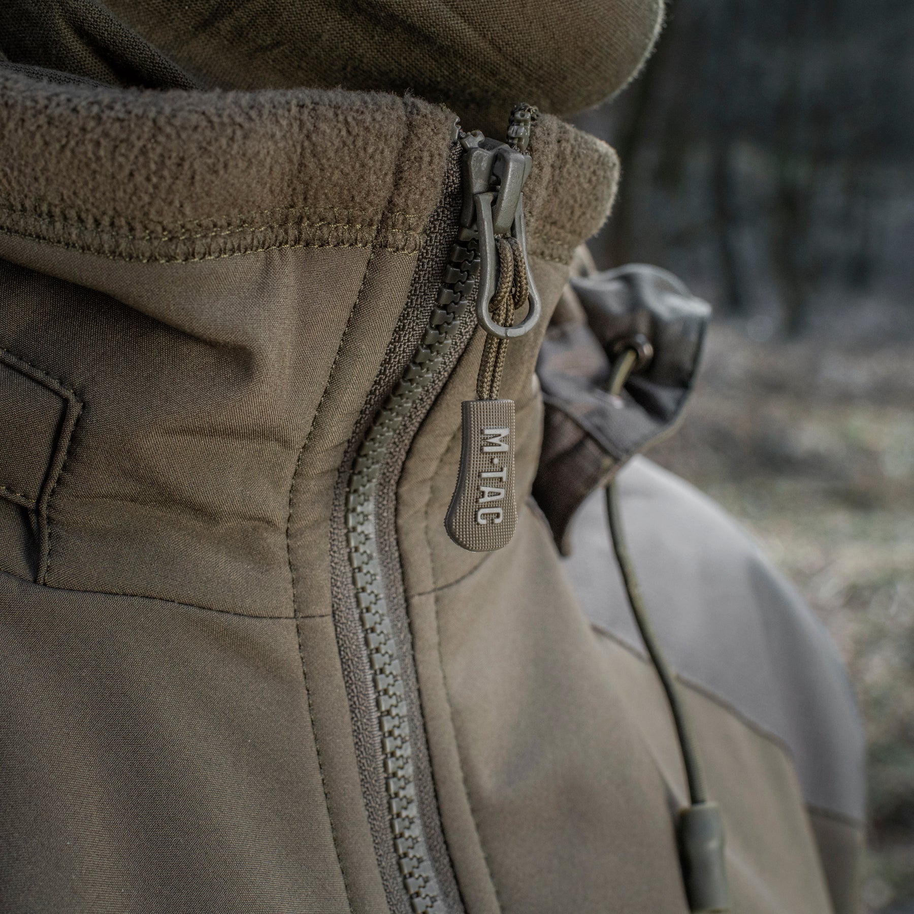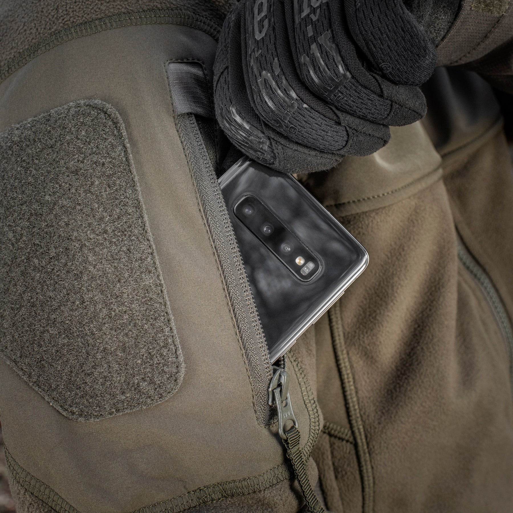 The M-Tac Norman tactical fleece jacket is equally suitable for cool and cold weather thanks to WindBlock material and Softshell inserts. In the first case, you can use it as an outer layer, in the second as insulation under a hoodie or a park. Made of 100% polyester. The WindBlock membrane grid structure is designed for low and as low temperature conditions as possible so that 80% of body heat is reflected from the surface inward and only 20% (excessive heat during active actions at low temperatures) leaves the membrane grid.