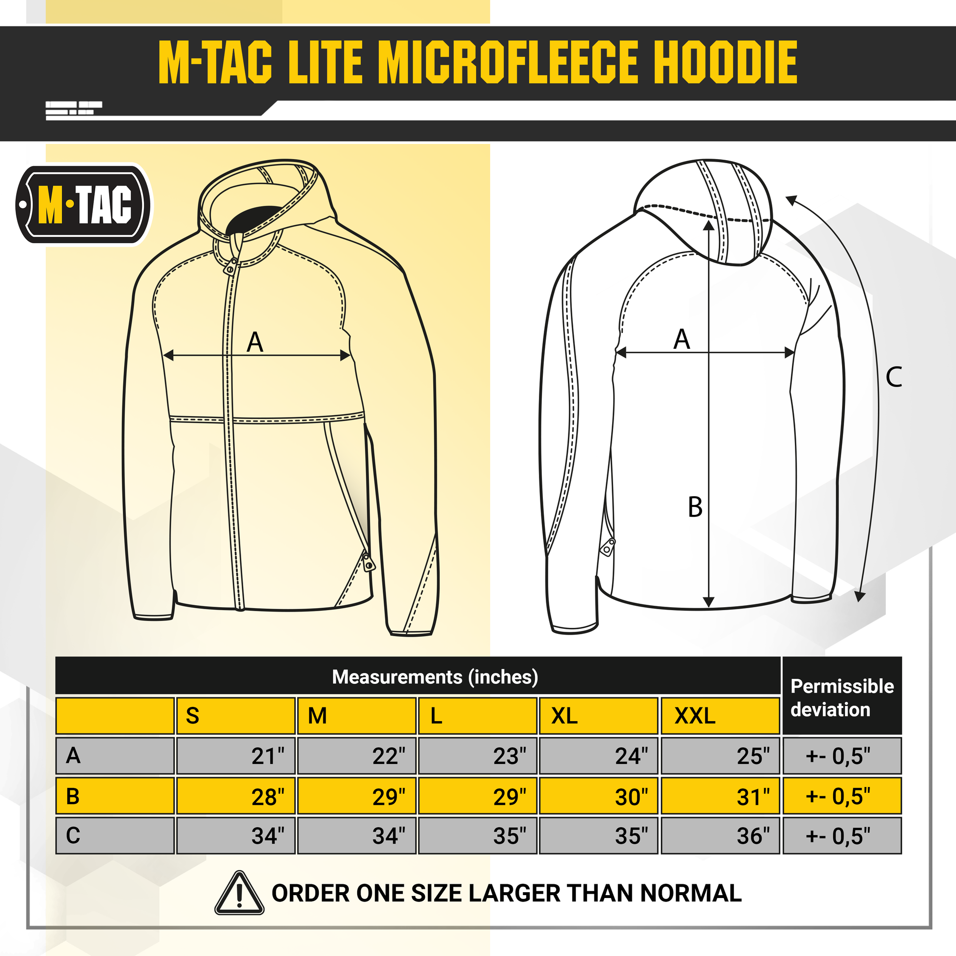 The M-Tac Lite Microfleece Hoodie is made of thin elastic fleece on a mesh basis. The bottom, cuffs, and hood are edged with branded elastic bands. The Microfleece Hoodie is a great and stylish option for everyday use, which will give ease and comfort.