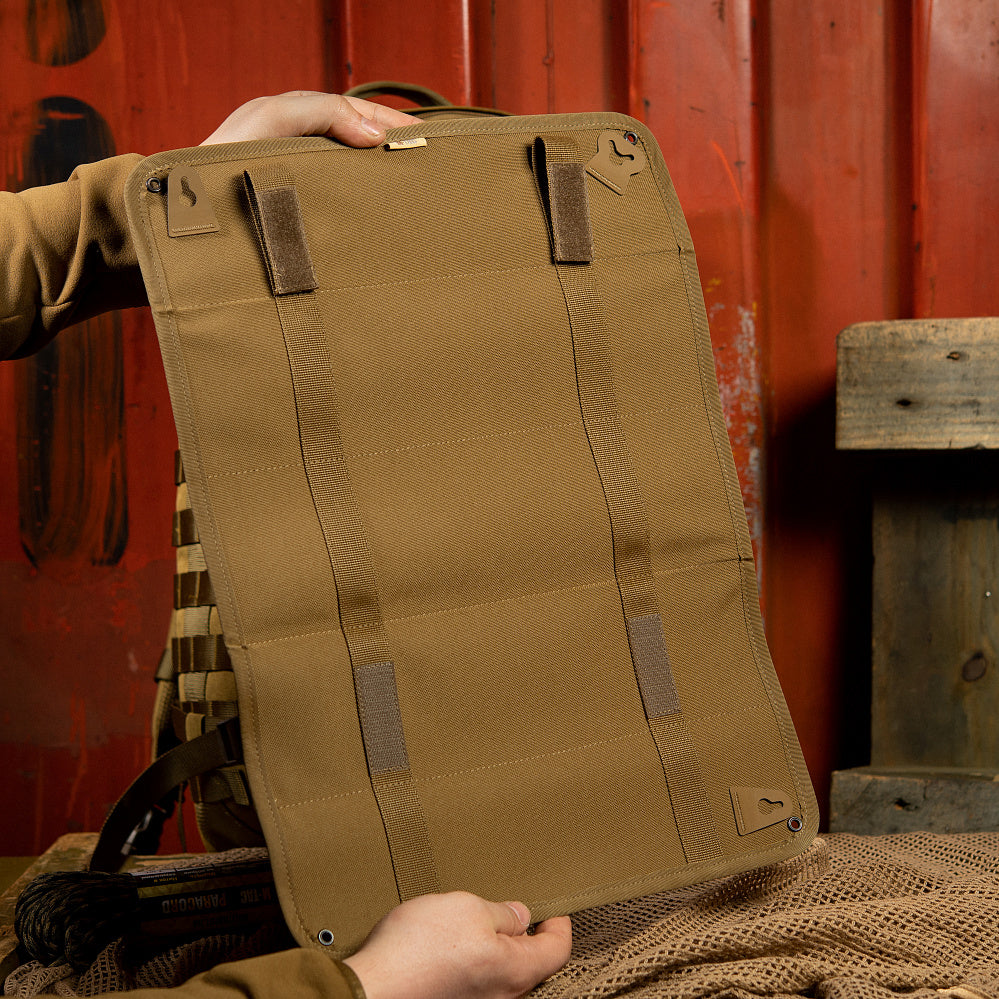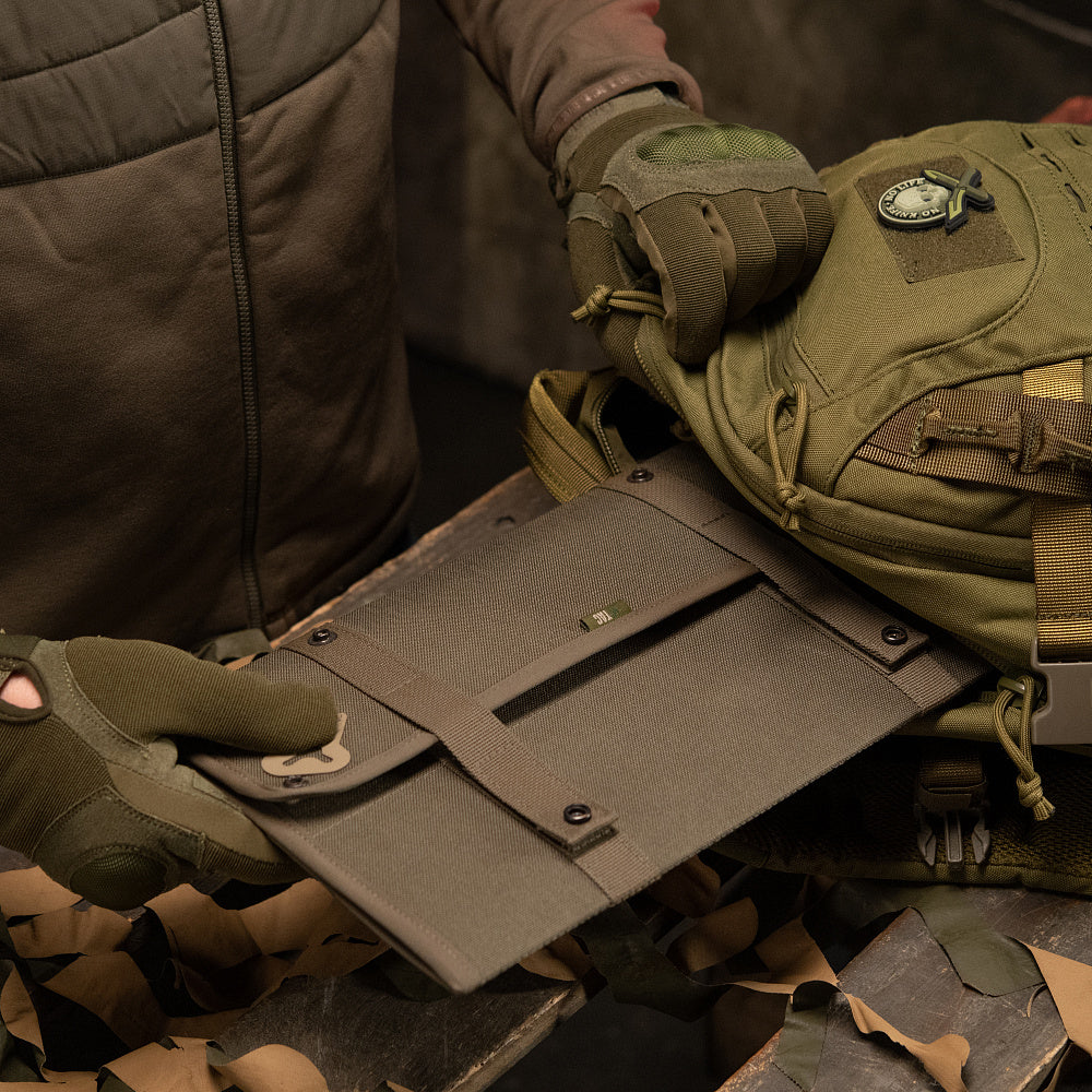 The convenient M-Tac organizer for storing and transporting your patches. The panel folds into three folds to fit into most tactical and urban backpacks. In the unfolded form, the panel can be hung both horizontally and vertically using hinges made of strong rubberized material. And with the help of straps on the buttons, the panel can be fixed vertically on any horizontal crossbar of small diameter.