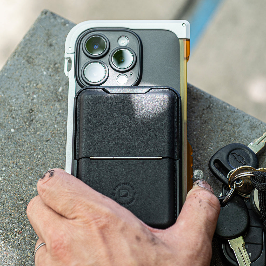 Integrate your card case with your iPhone for a singular carry. The magnetic mechanism allows you to simply separate your wallet from your phone for a quick mag-charge. The stitched leather and CNC machined frame echoes the Dango Design DNA. As a wallet, it tucks compactly in your pocket and as a phone pocket, it discreetly conceals your card and cash.