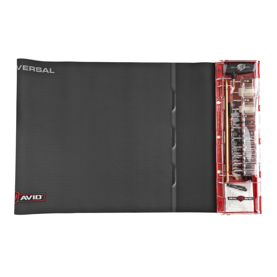 Upgrade your cleaning experience with the world’s first Master Cleaning Station for rifles, handguns and shotguns. Designed for comprehensive cleaning of handguns and rifles as well as 20 & 12 ga. shotguns. It combines a Next-Gen cleaning mat with an intelligently designed cleaning kit filled with an extensive set of cleaning tools. It keeps easy-to-lose gun parts organized while you work. It provides a huge work area for a completely disassembled long gun, yet rolls up for compact storage in the included bag. It’s called Master, because it does it all. You will call it brilliant