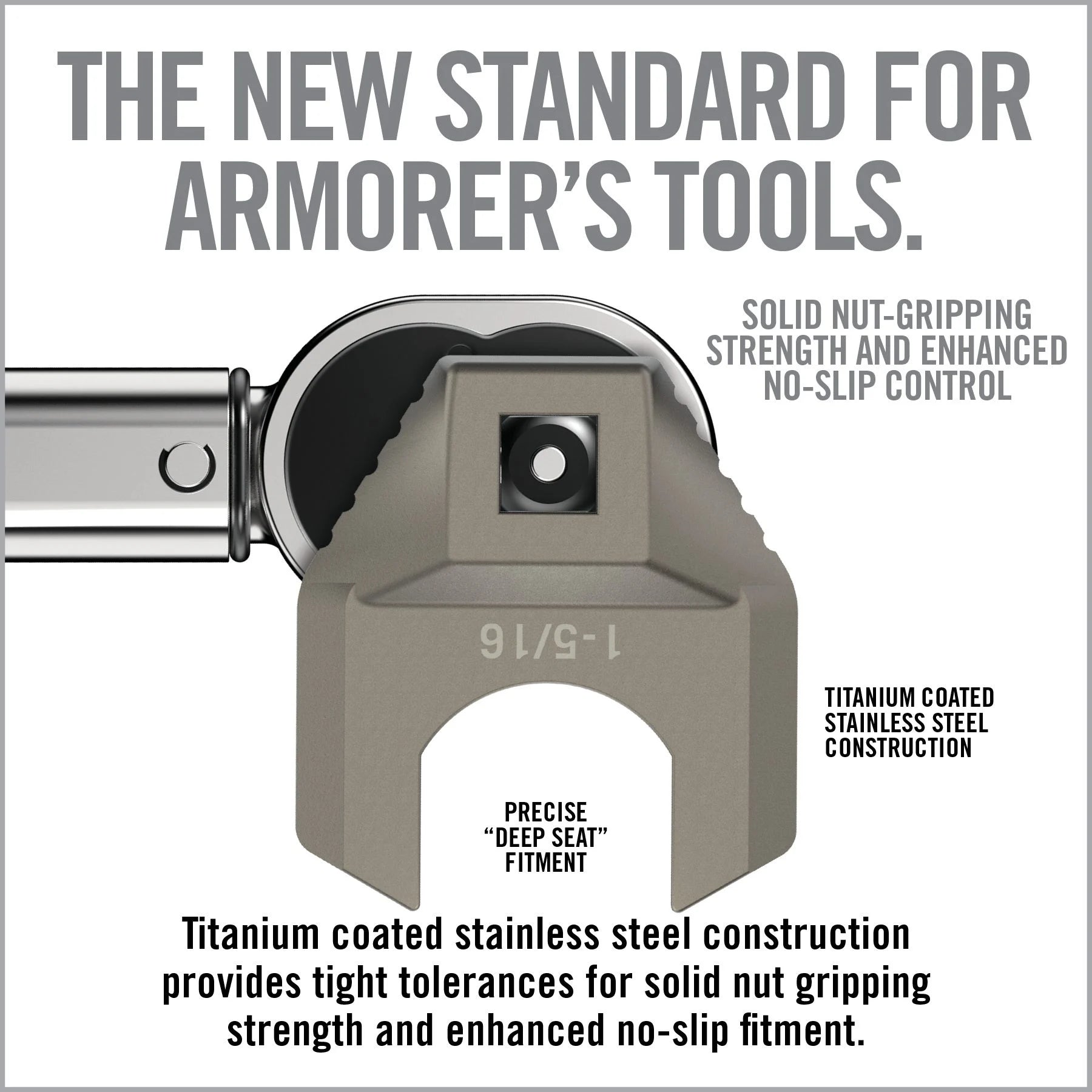 Master-Fit ½” Crowfoot Wrenches are purpose built and specialized for precise fitment to minimize marring on gun parts. Constructed of titanium coated stainless steel, delivering the highest level of precision to confidently apply torque to AR platform.