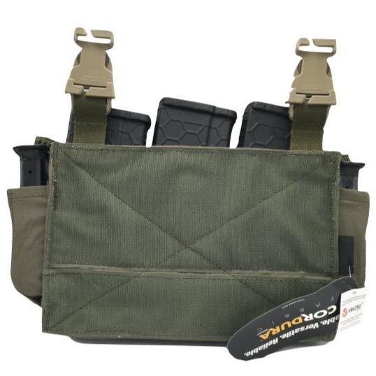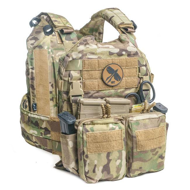 The HRT Maximus Placard was designed to attach to our HRT HRAC plate carrier or work in conjunction with Duraflex buckle system. Our Maximus Placard features triple 5.56 magazine inserts along with two handgun magazines with polymer inserts. The Maximus placard also features two general purpose zipper pockets on the front. The back face of the placard is a Hook face to mate with a Loop face of the front of a carrier or vest to keep it securely in place. The Maximus placard is made from 500 Denier Cordura and has an integrated Duraflex Buckle attachment system.