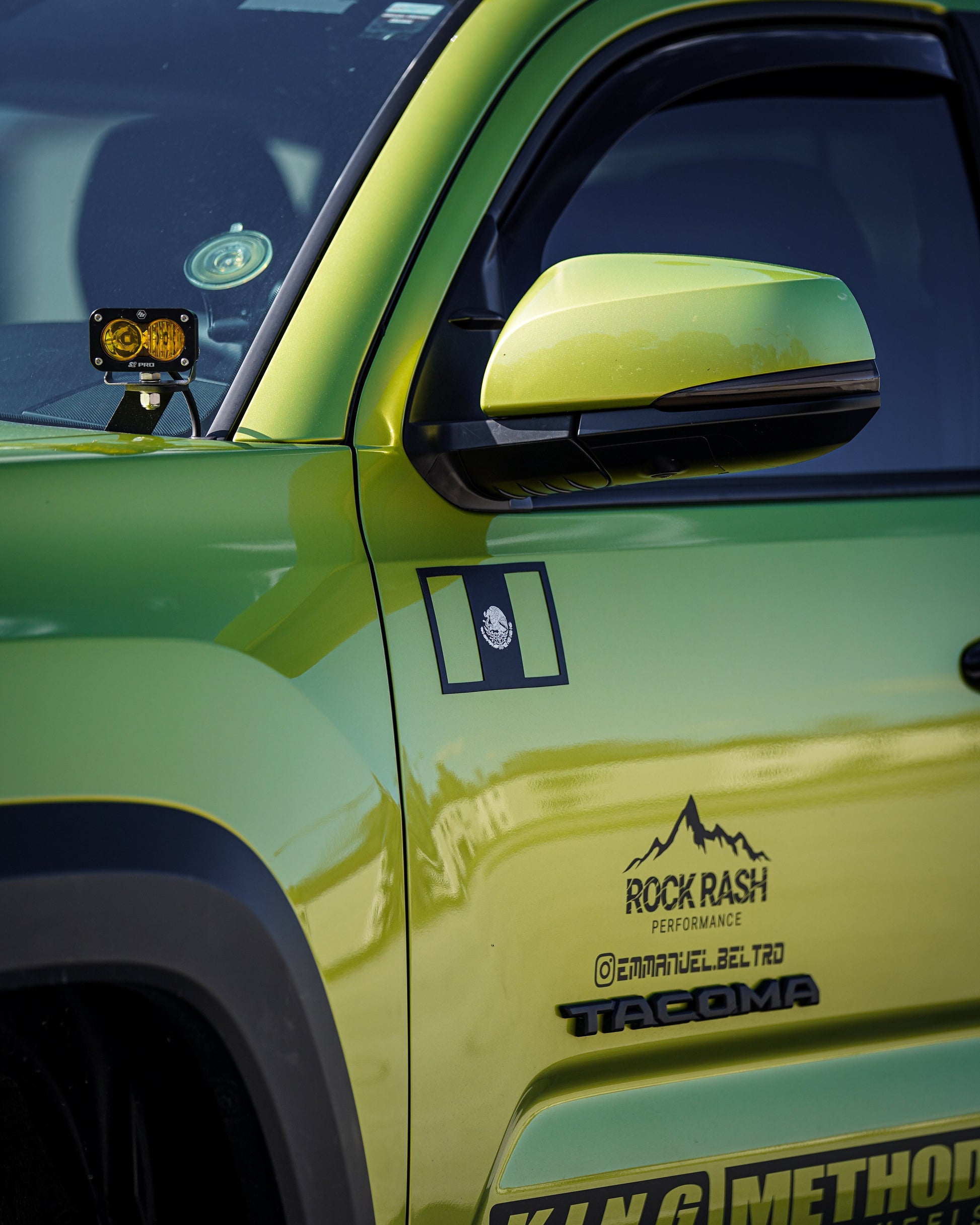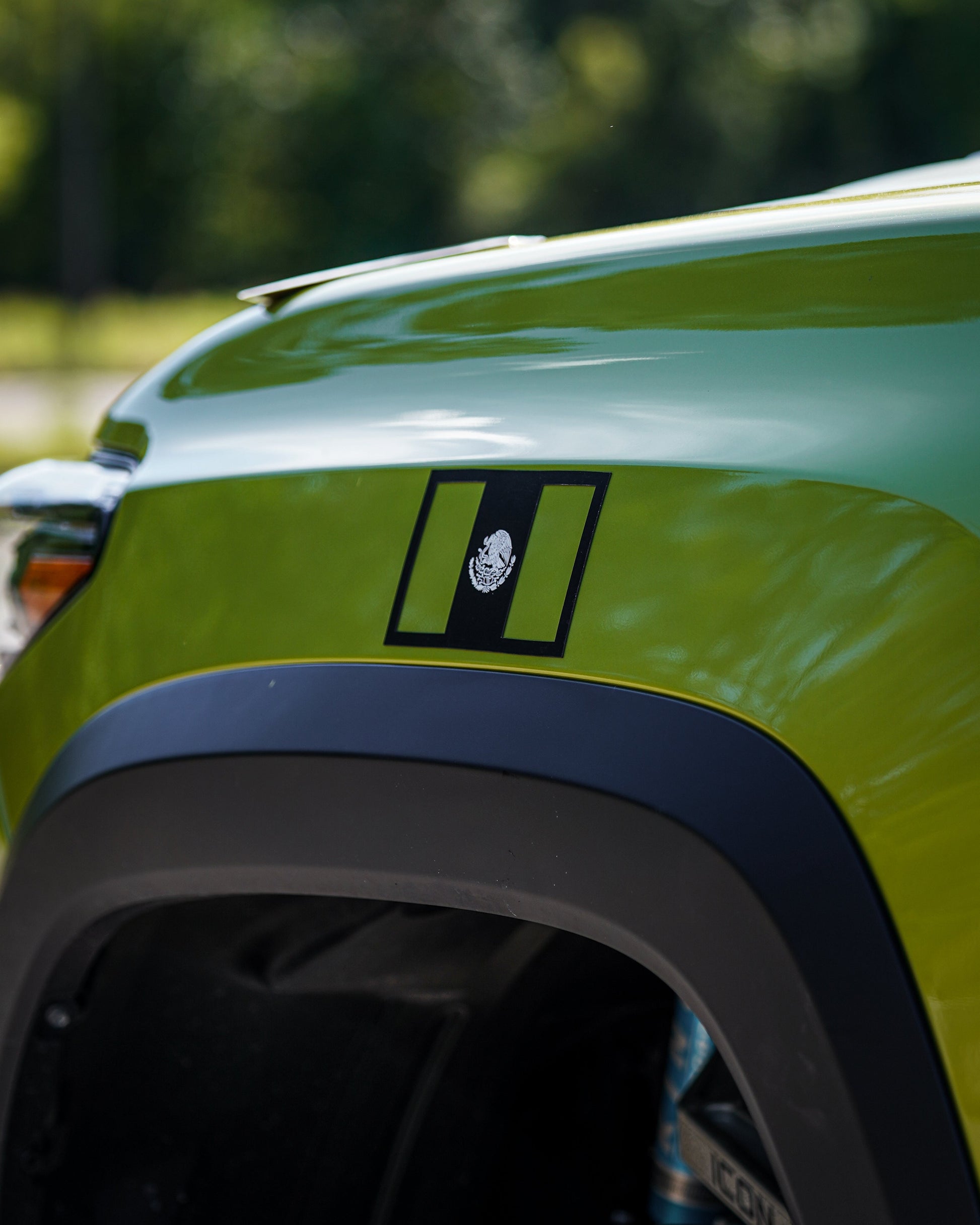 -Brilliant White All-Weather Printed Mexico Coat of Arms in the center with cut out and removed color panels to show off your vehicle paint color.