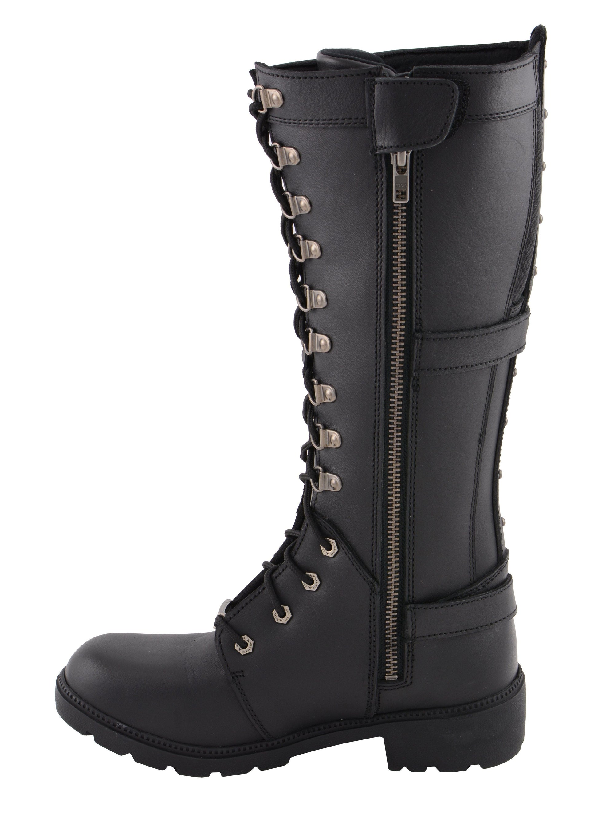 Milwaukee Leather MBL9380 Women's Black 'Jane' 15-inch Leather Combat Style Harness Motorcycle Boots