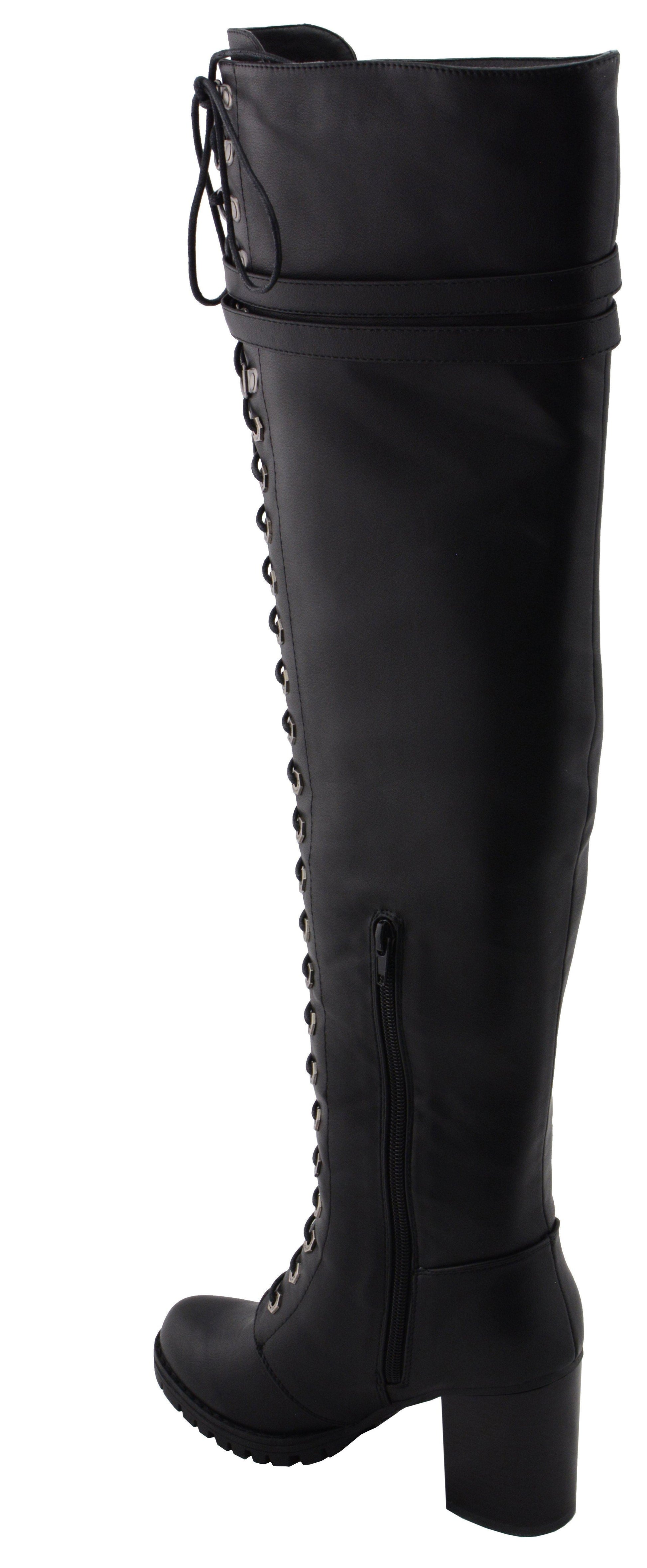 Milwaukee Leather MBL9424 Women’s Black Above the Knee Boots with Lace-Up Closure