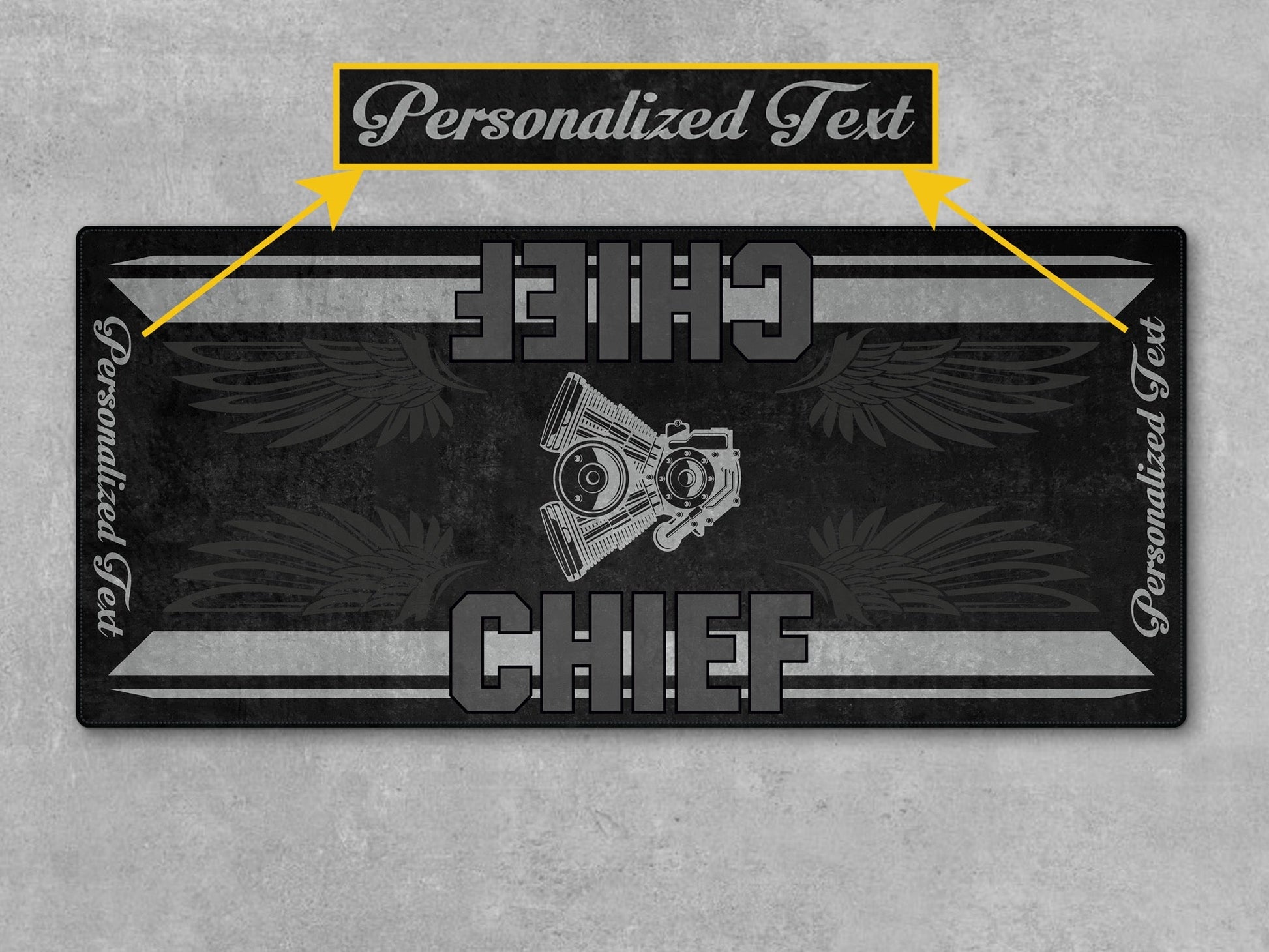 In designing the mat, we drew inspiration from the characteristic features of your motorcycle. This mat will complement your passion for your motorcycle and enhance the atmosphere of the location where you park it.