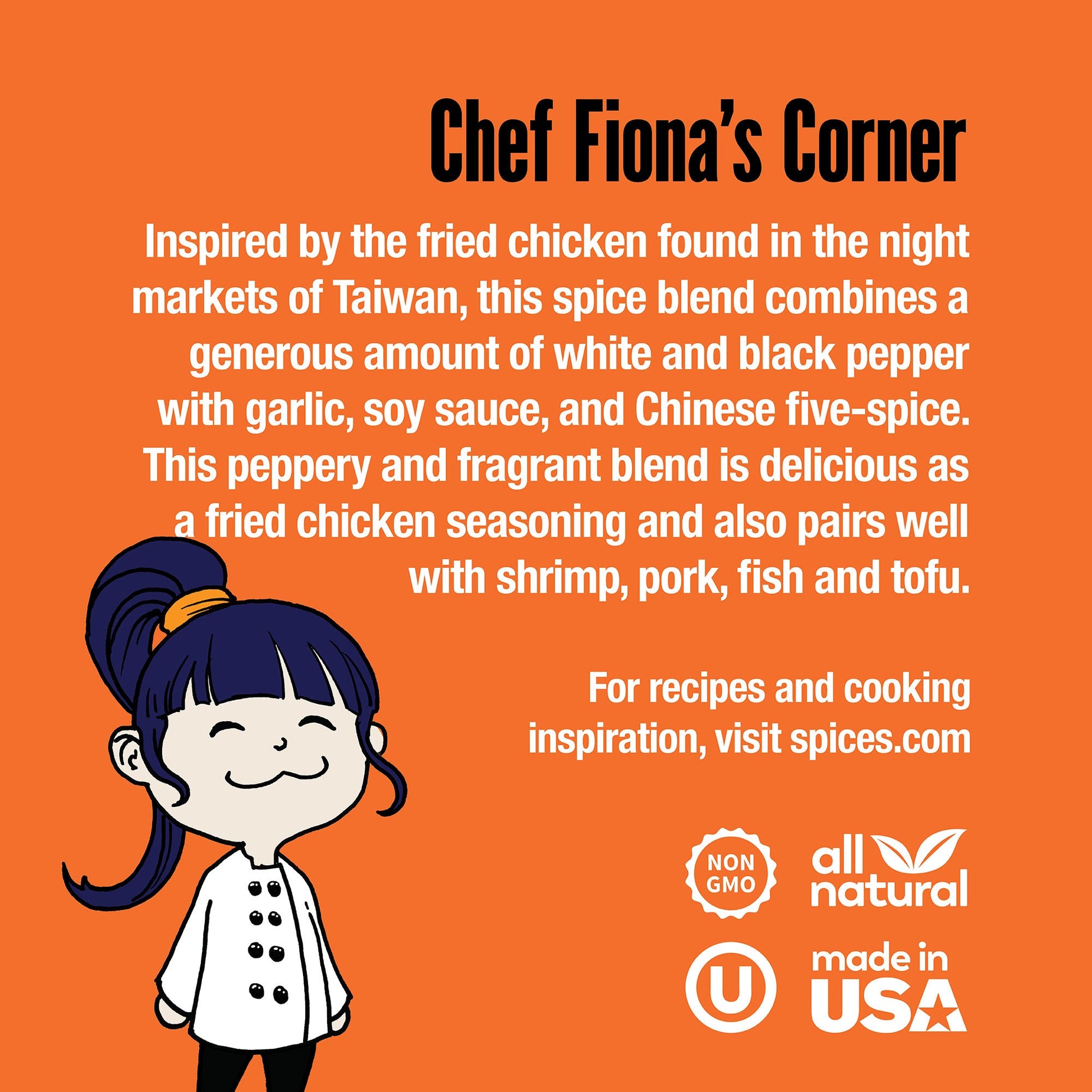 CHINESE SALT AND PEPPER BLEND: Inspired by the night markets all over Asia and the magical fried chicken sold by street vendors; peppery, fragrant Night Market is a savory, punchy blend of white & black pepper and Asian Spices, used as both a cooking and finishing spice.