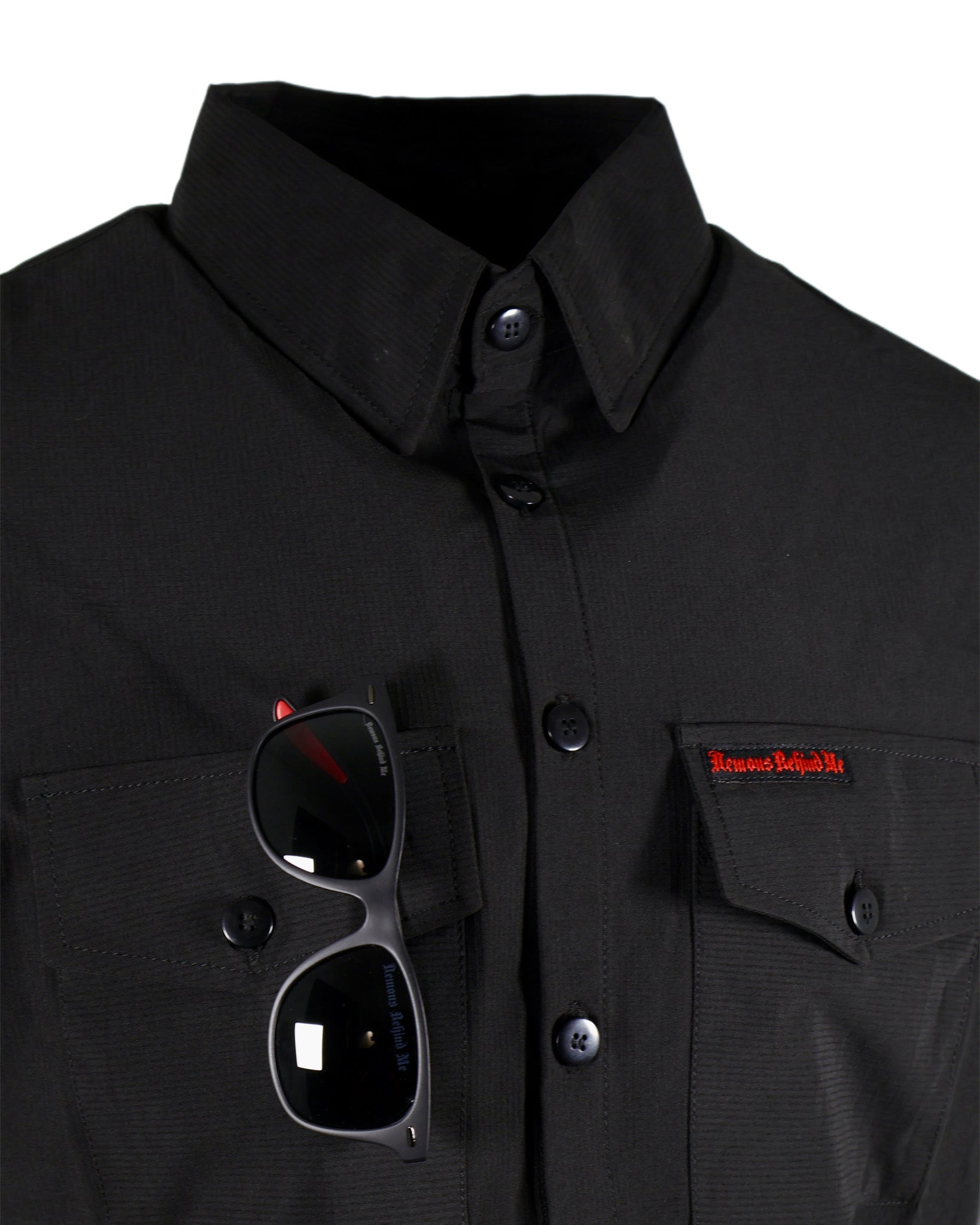 Performance Tech Black Hybrid Button Up Shirt (Hidden Snap Collars)