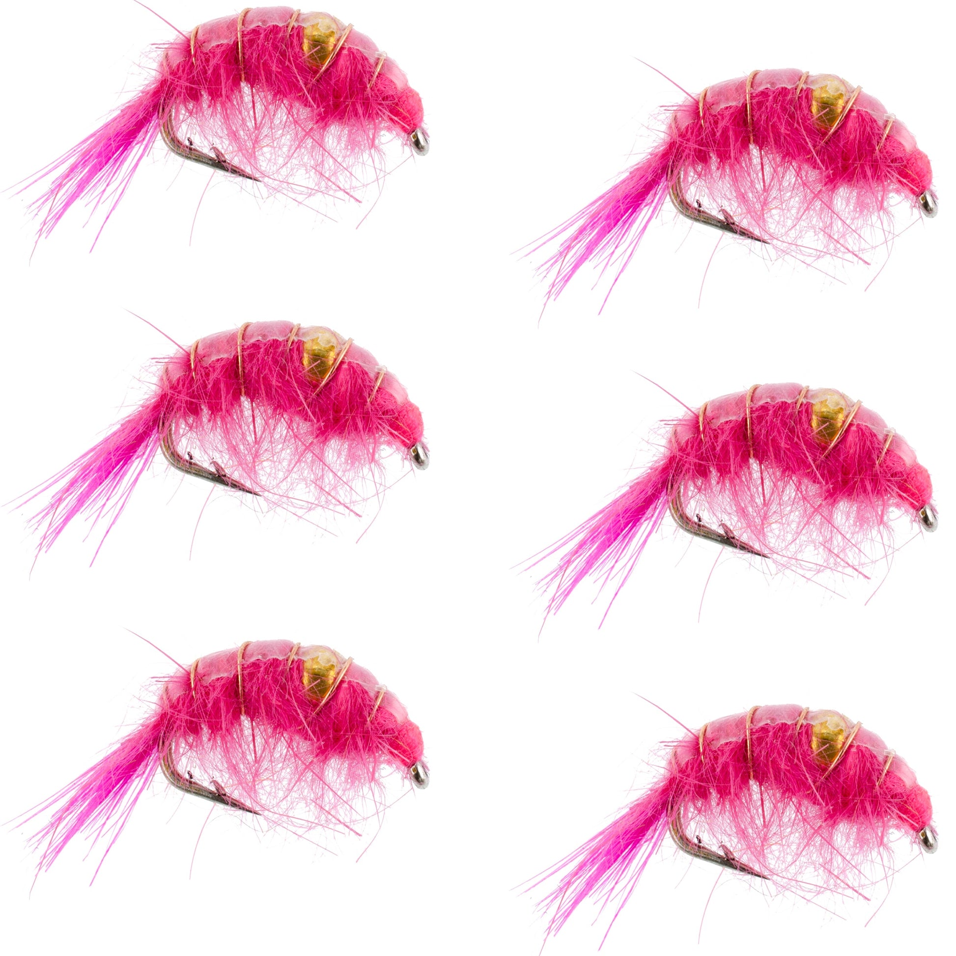 Pink Beaded Shrimp Scud Pattern - 6 Flies - Size 12 - Tailwater Lake Fly Fishing Nymph