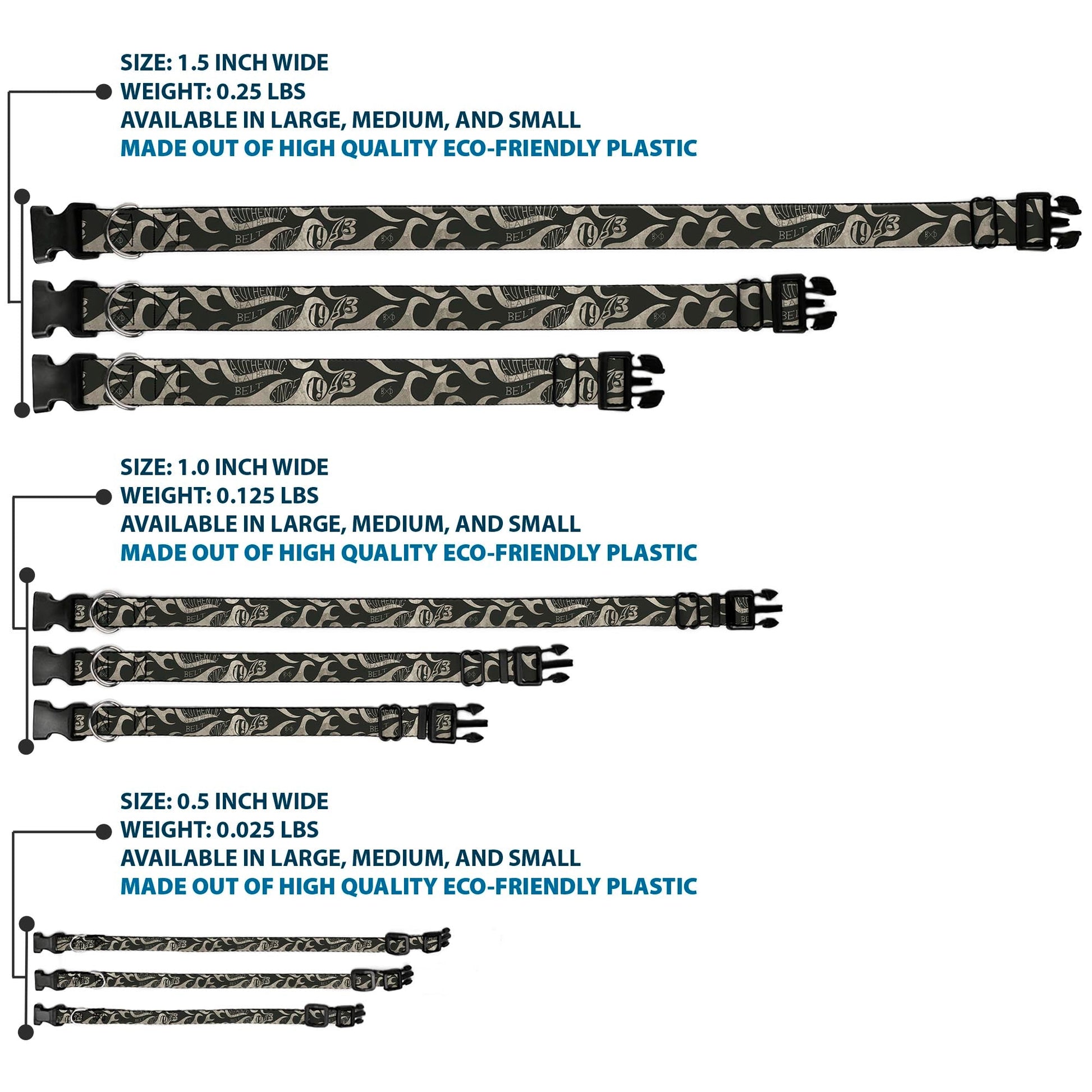 Vibrant and bold, this beautiful, polyester dog collar is made to show off your dog's unique style through all the seasons. With an overengineered plastic buckle and strong D-ring, this durable collar can hold up to whatever your dog can dish out. This product is officially licensed by Buckle-Down.