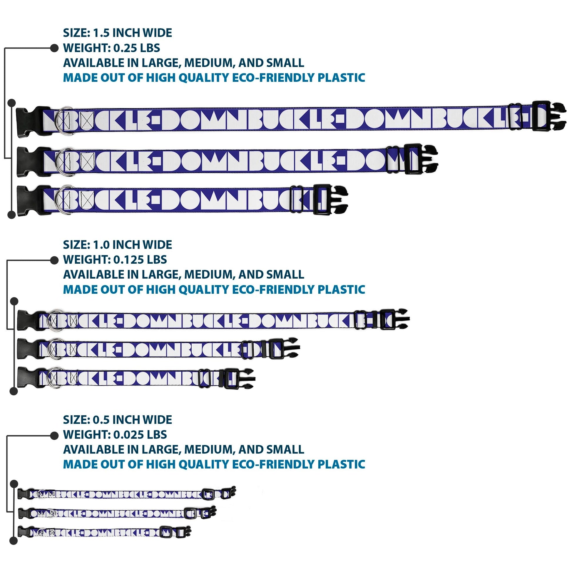 Vibrant and bold, this beautiful, polyester dog collar is made to show off your dog's unique style through all the seasons. With an overengineered plastic buckle and strong D-ring, this durable collar can hold up to whatever your dog can dish out. This product is officially licensed by Buckle-Down.