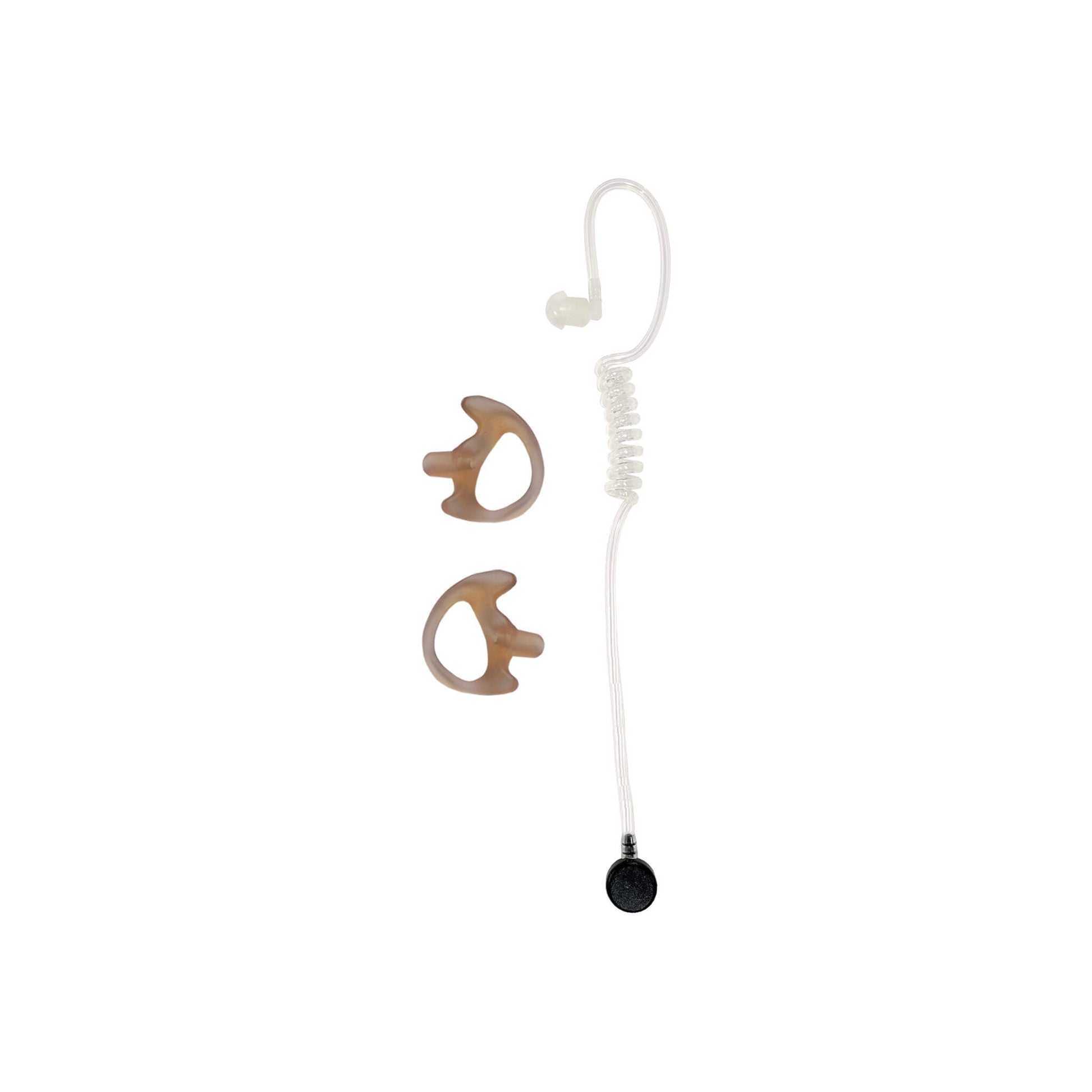 There is a removable acoustic tube earpiece for radio monitoring. Option to add Decibullz Isolation Ear Plugs, compatible with this kit’s acoustic tube, perfect for high noise environment. As well as a 3.5mm audio out jack, perfect for incorporating a hearing protection headset w/ an Audio Input Cable. This would allow you to transmit via the Throat Mic but receive all audio through your hearing protection headset.