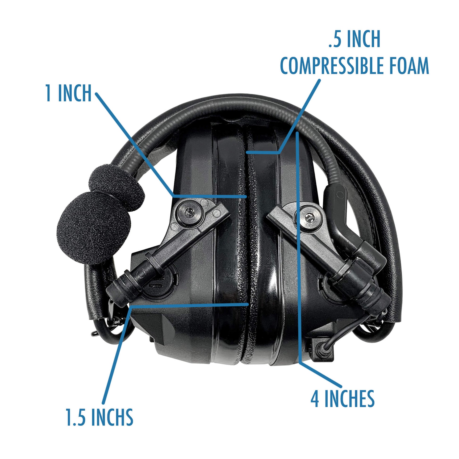 Active Hearing Protection Headset Designed For Public Safety. The PolTact V1 Tactical Headset offers situational awareness with active listening microphones that at times will heighten your listening ability over exposed ears. The PolTact Headset features internal audio compressors that instantly shutoff the Active Listening System, protecting your hearing from short term & long term damage/hearing loss. Utilizing High Density Foam/Gel Cups, properly sealed & layered housing has allowed the PolTact Headset to offer an average noise reduction to a very safe 28dB. Also protects from percussive noise damage that earplugs just can not do. The bones around your ear play an important part in feeding the auditory system, this headset offers protection from this hidden source of hearing loss.