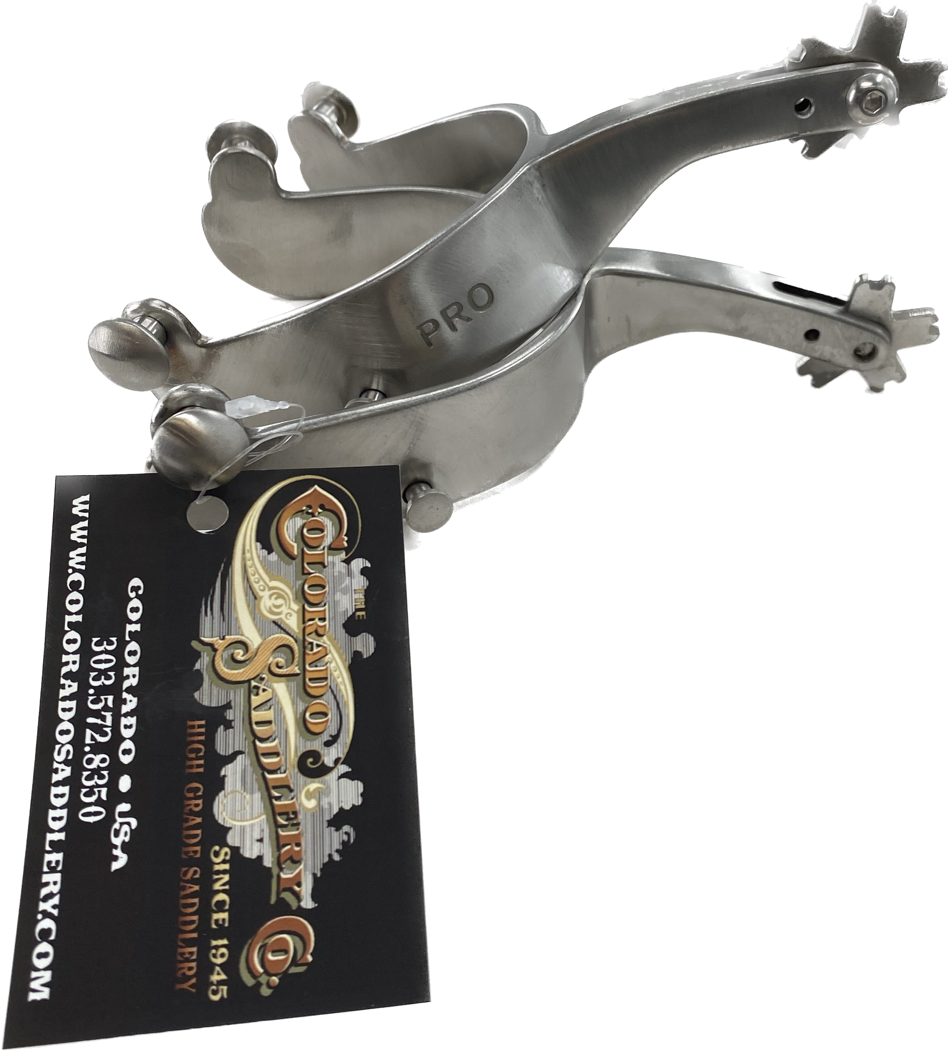 1" Band, 2 1/2" turned down shank, 22 degree offset with 10 mm wide shank and 1 1/4" 5 point rowel. Brushed surface. Men's