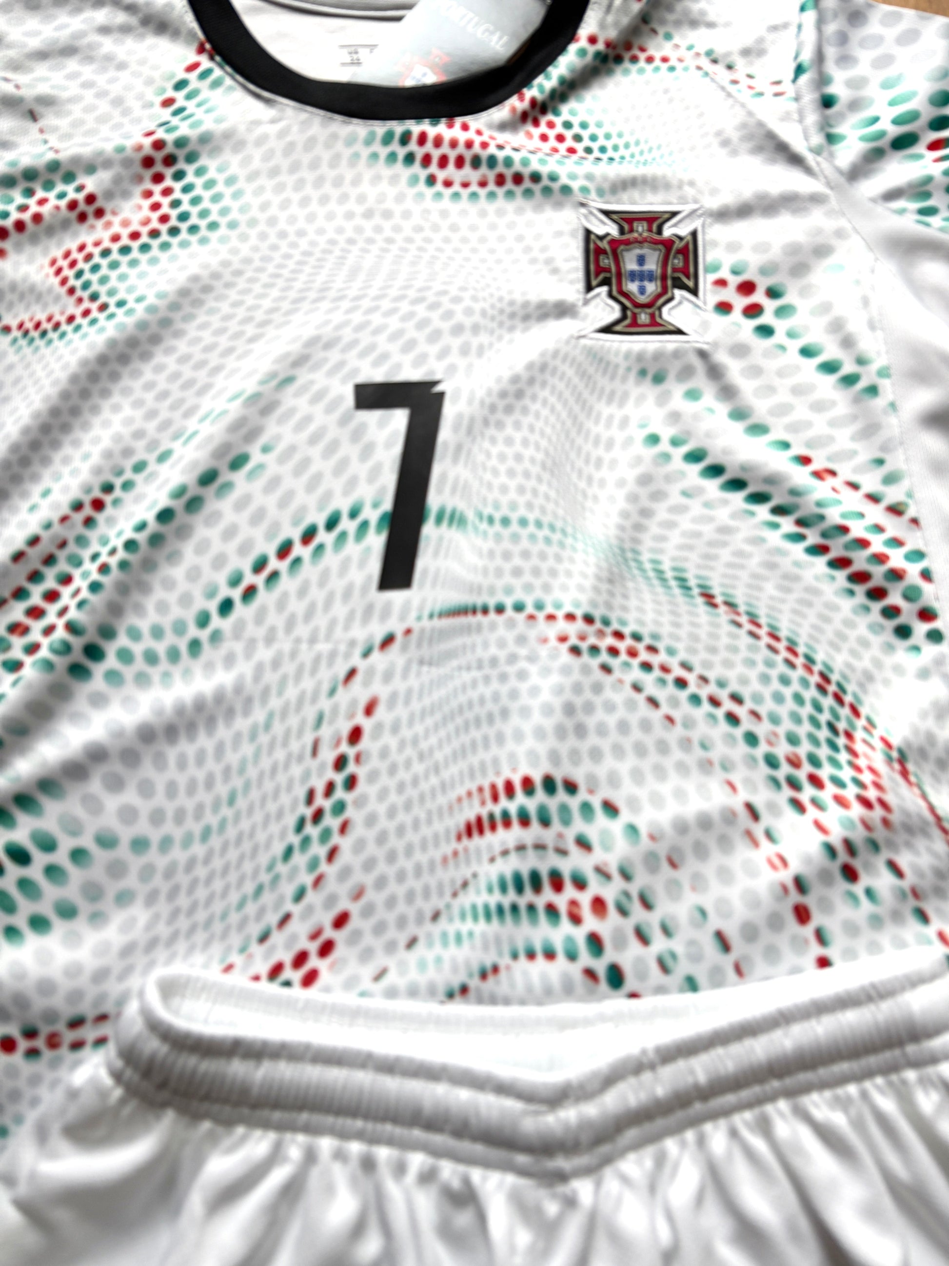 Ronaldo Portugal 2025 Away White Kids Soccer Jersey Kit 2 Piece Set. Football Youth Toddler Football Shirt and Shorts matching set. Toddler Youth Tshirt Awesome Youth Soccer Jersey and shorts set of 2. Size 2T, 3T, 4T, 5T, 18, 20, 22, 24, 26, 28, 30. All in stock ships within 12 hours from order time. We ship from Missouri. All soccer jerseys are brand new and never tried on. Amazing Screen Printing & Embroidery.