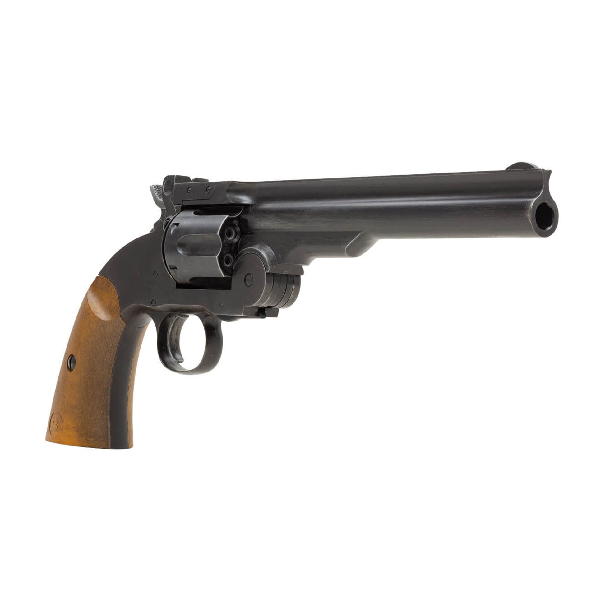 The Schofield is probably what you envision when you think of a Wild West shootout. Shooting with this beautiful piece of frontier history is your chance to unleash your inner outlaw or sheriff depending on your team preference (no judgement either way). Perfect on the range, for firearm proficiency and training, or backyard plinking, the Schofield No.3 Vintage Revolver from Barra Airguns is the right pistol at the right price.
