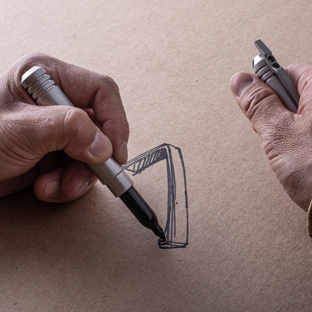 Instructions: To install the Sharpie Fine Tip Pen into the Dango Marker, simply insert the bottom end of the Sharpie pen into the marker sleeve and tightly push downwards so that the Sharpie bottoms out in the marker sleeve. Once it is tightly secured, remove the cap of the Sharpie pen, and replace it with the CNC machined Dango Permenent Marker cap. The original sharpie cap can be discarded. To remove the Sharpie Pen, push the pen out from the bottom of the sleeve through the hole with the pointed tip of the cap or a thin object like a pen or allen wrench.