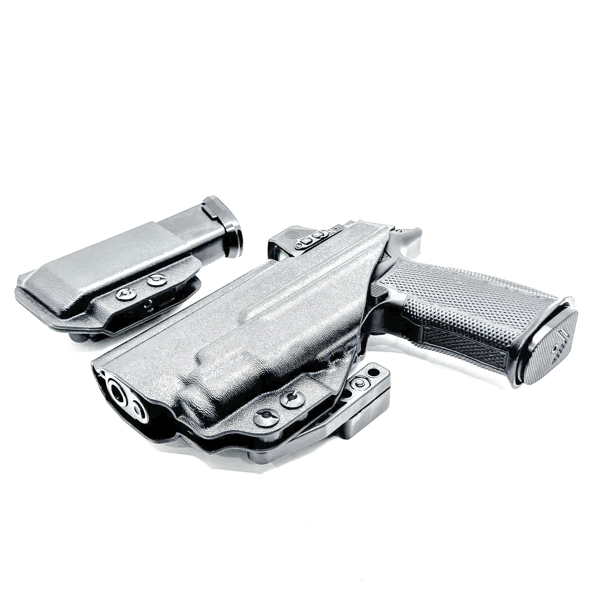 - Vacuum-formed with precision-milled CAD molds and tested on actual pistol/light combinations.