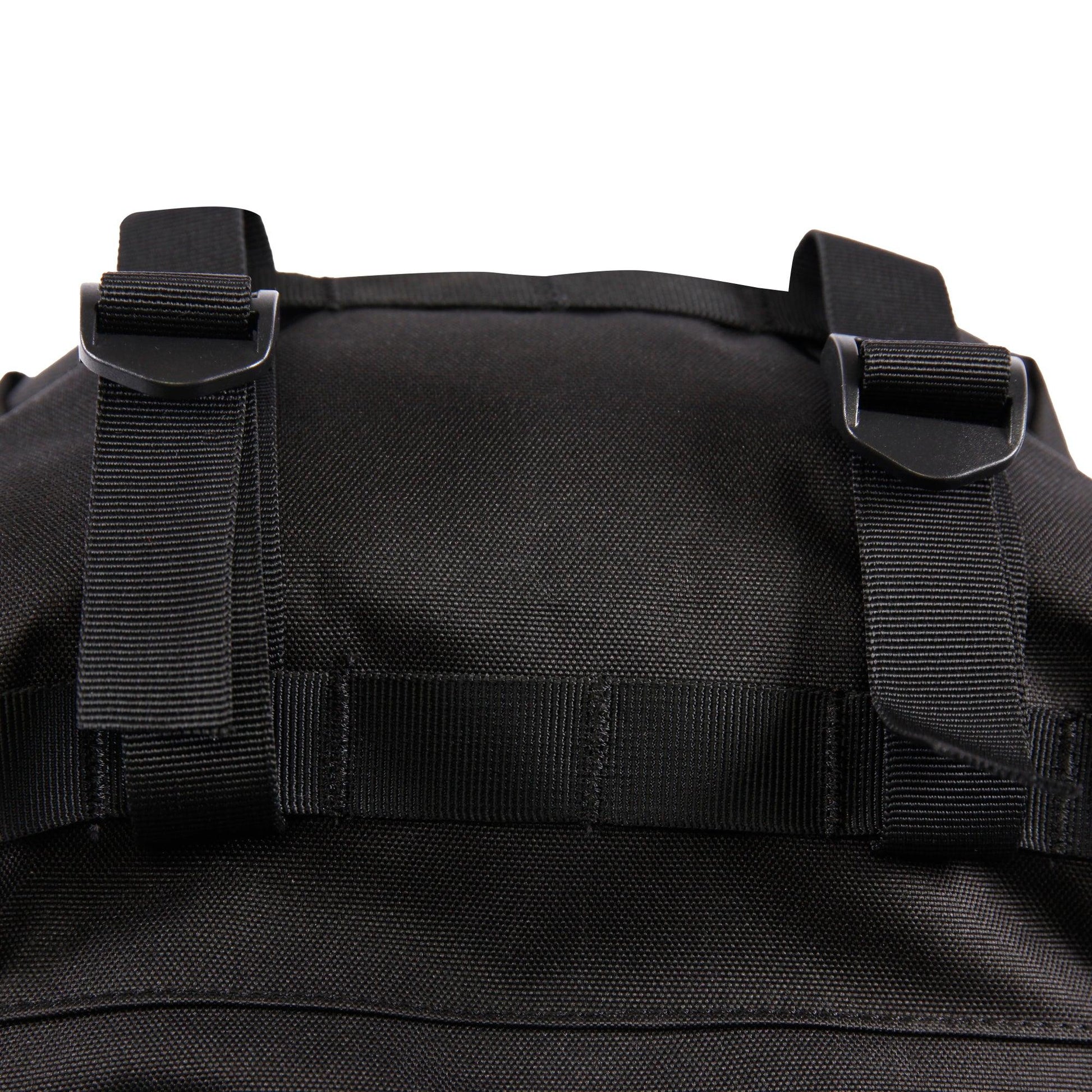 - Compression straps cinch the top cover down to protect the bag's contents.