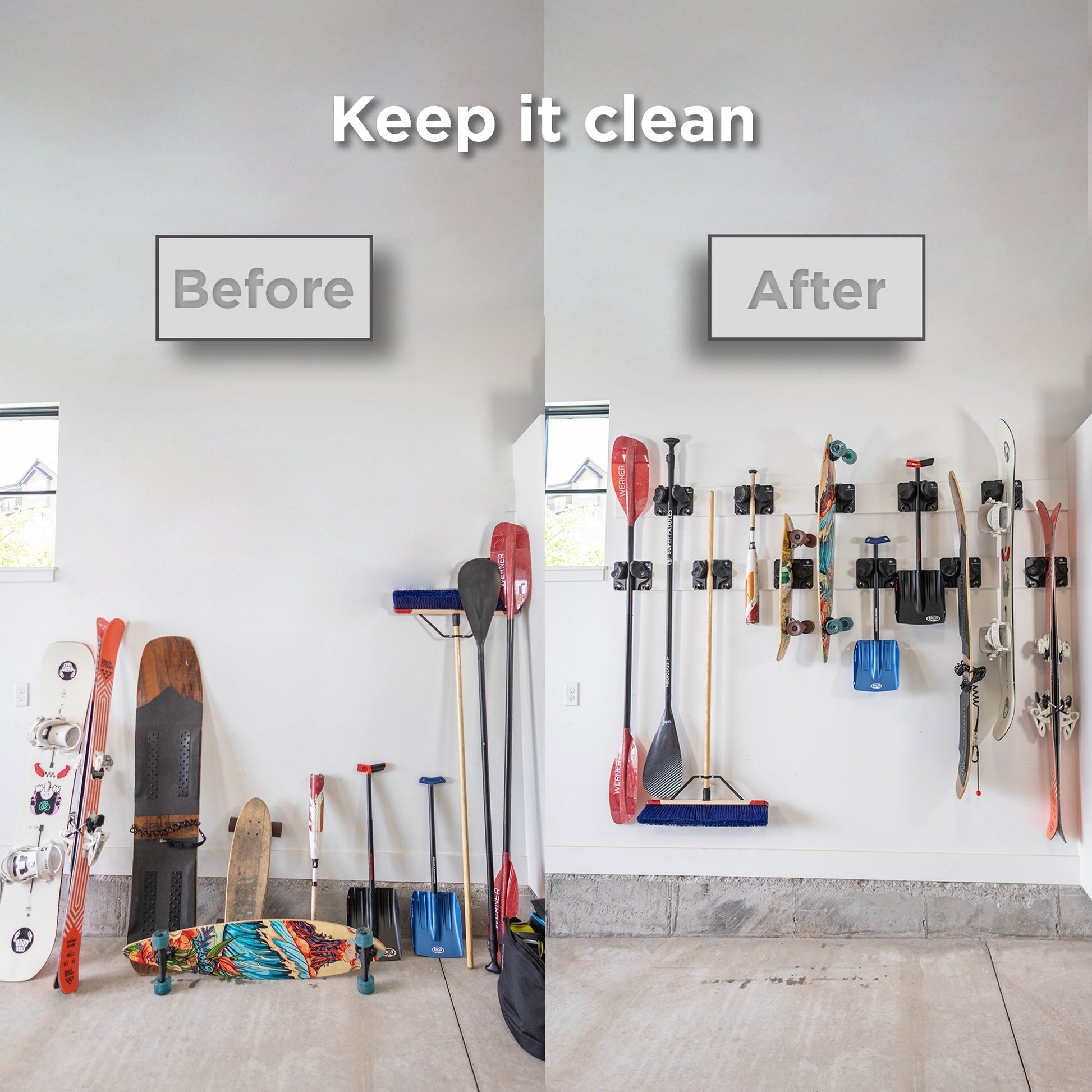 While storing your skis and snowboards is very important, we know storing other gear is too. From skateboards to shovels and rakes, Gravity Grabber will hold other things, too, making it the ultimate year-round storage system.