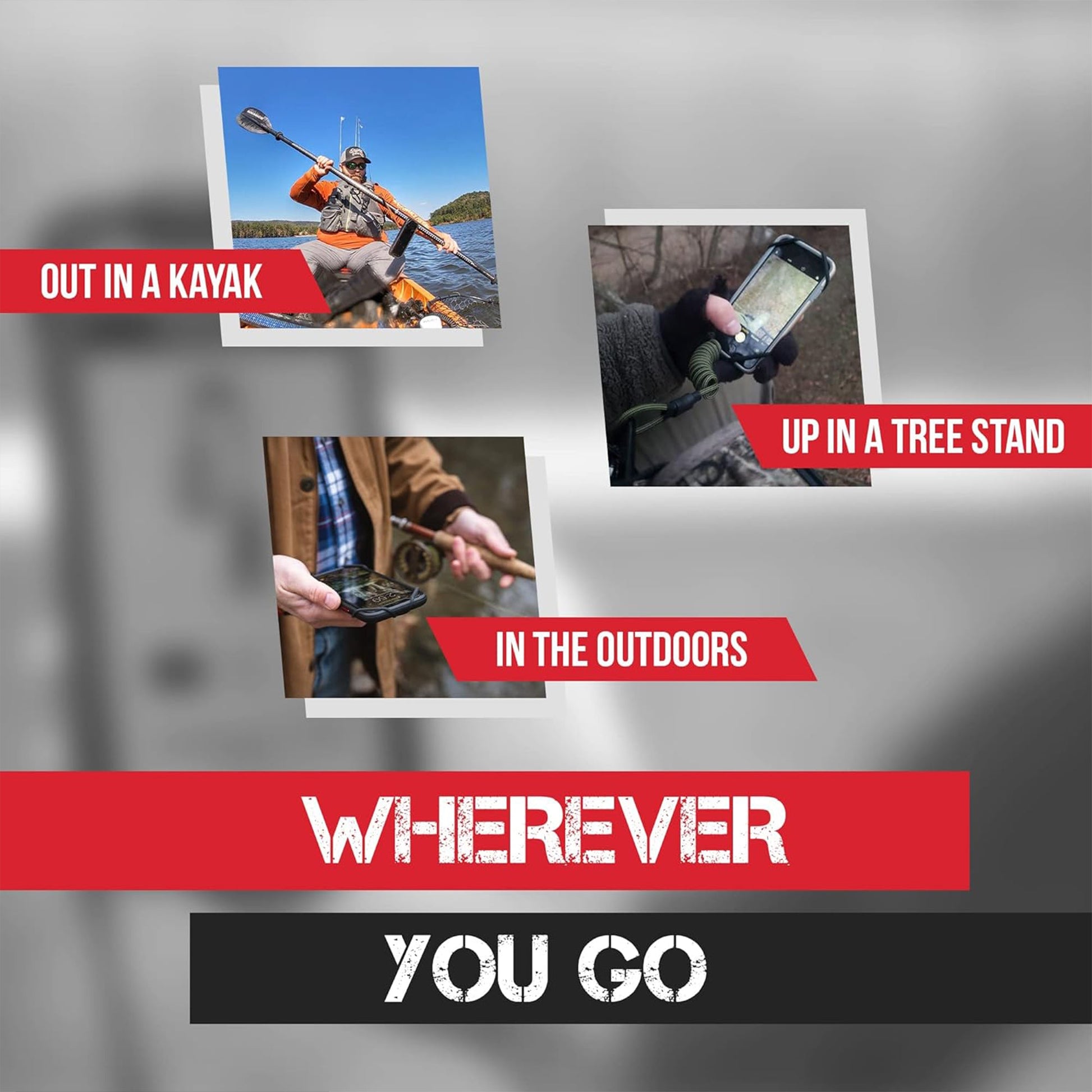 The Protector Phone Tether XD (ProXD). Your ultimate companion for epic adventures. Designed by outdoor enthusiasts for thrill-seeking explorers, this next-level phone tether is the perfect for kayakers, fishermen, hunters, rock climbers, snowboarders, and anyone else who wants to keep their phones secure while still being able to capture the thrill of the moment.